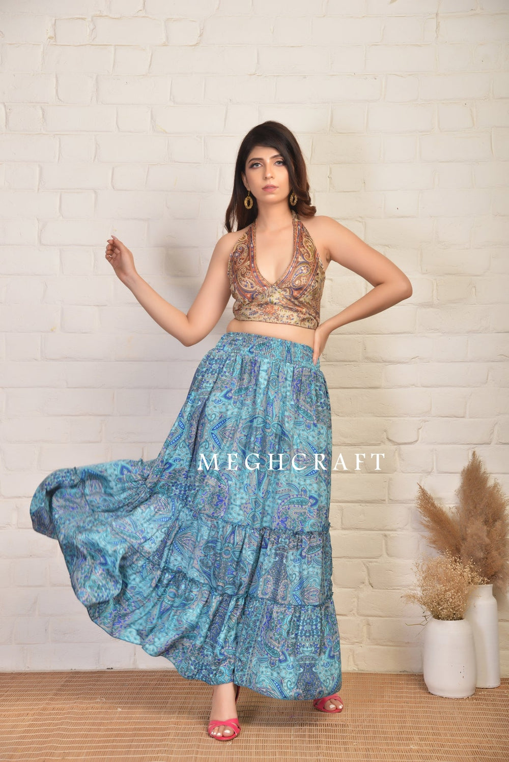 Faldas largas estilo Boho Barcelona del último diseñador. Elaborado exclusivamente a mano en su país de origen India. Ideal para moda bohemia, moda urbana, ropa de resort, ropa de playa, estilo español, ropa de danza tribal y uso diario.