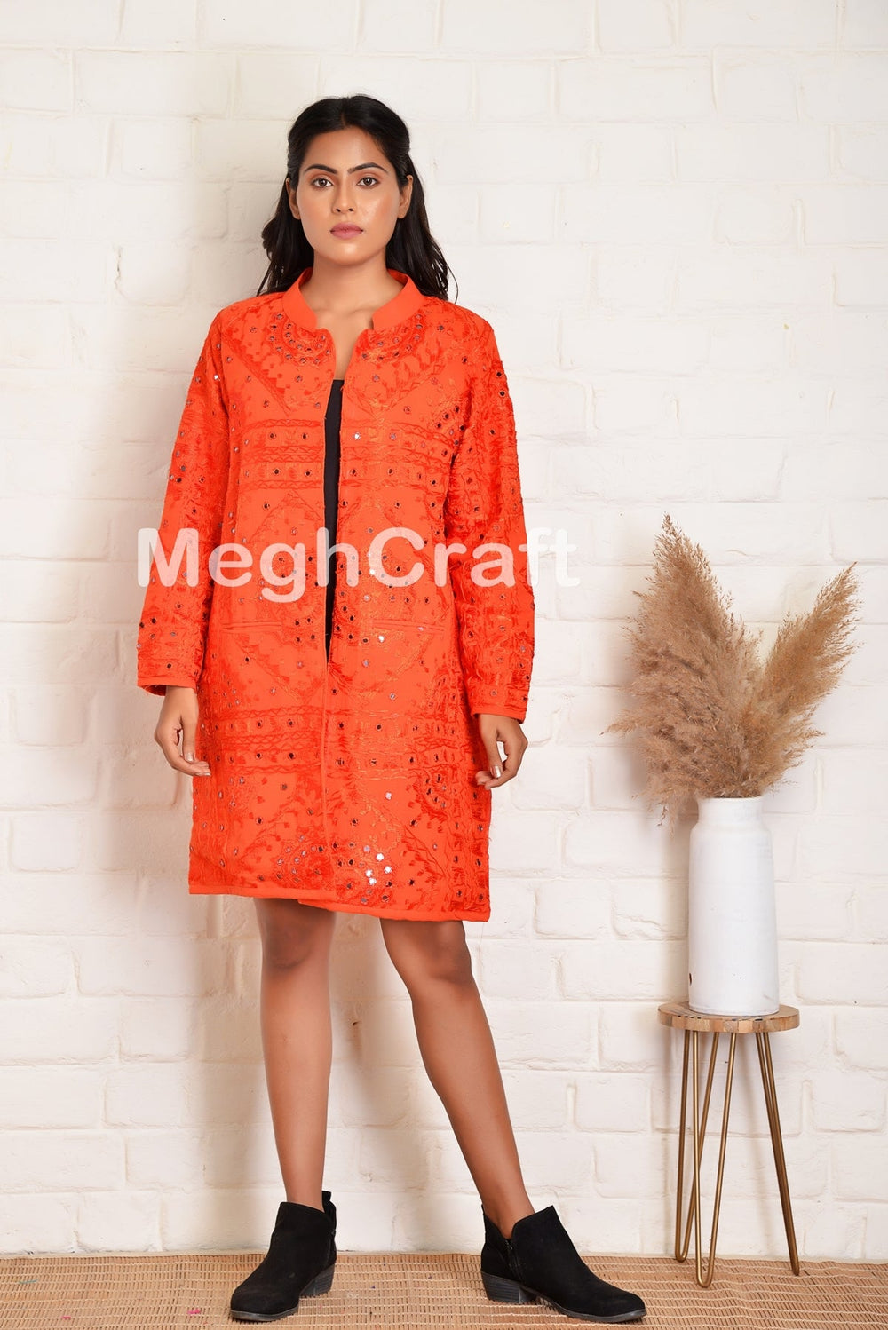 Chaqueta Gujarat Hand Mirrorwork Aspecto brillante y llamativo. Los patrones de espejos tradicionales te harán lucir moderna y hermosa.