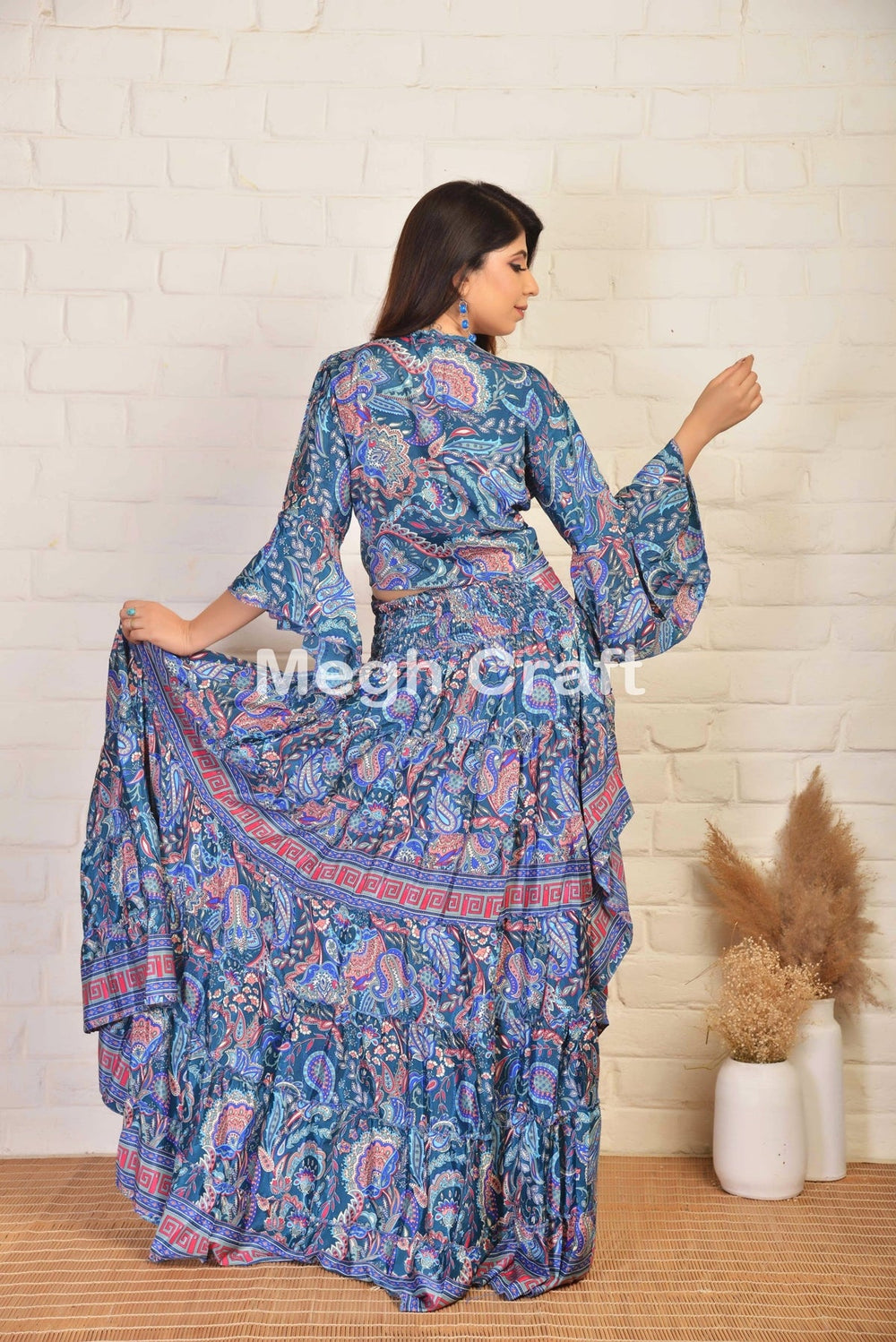 Falda: cintura fruncida estilo alto y bajo (LARGO: 41-42" PULGADAS)