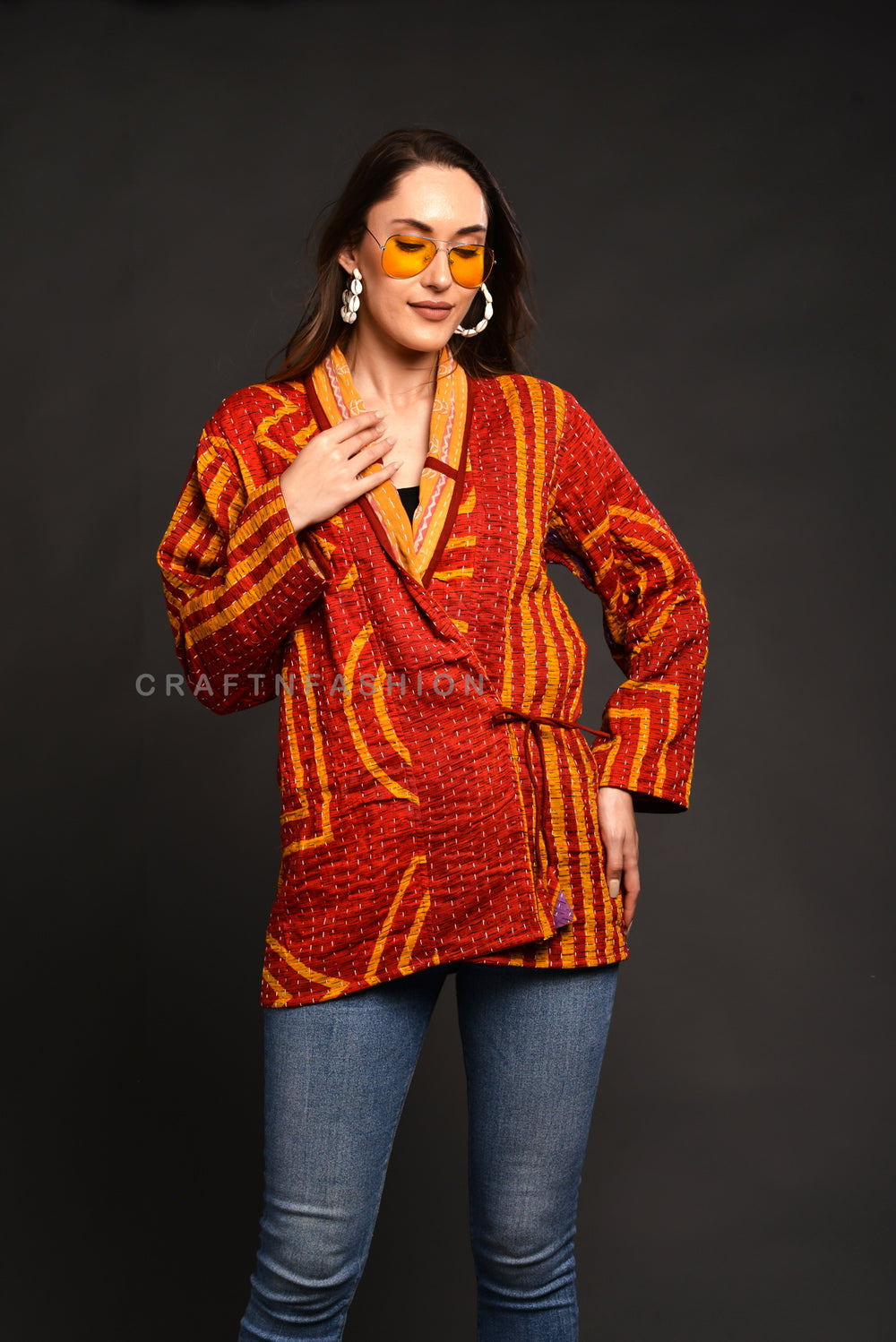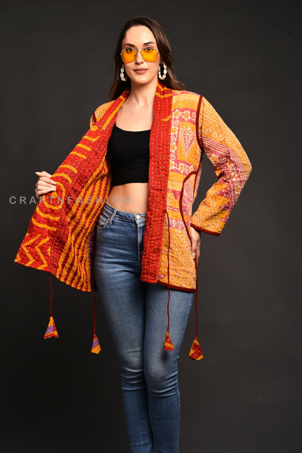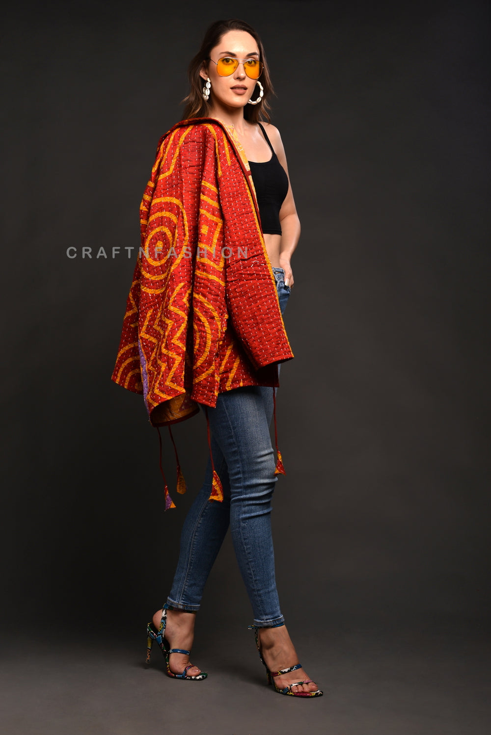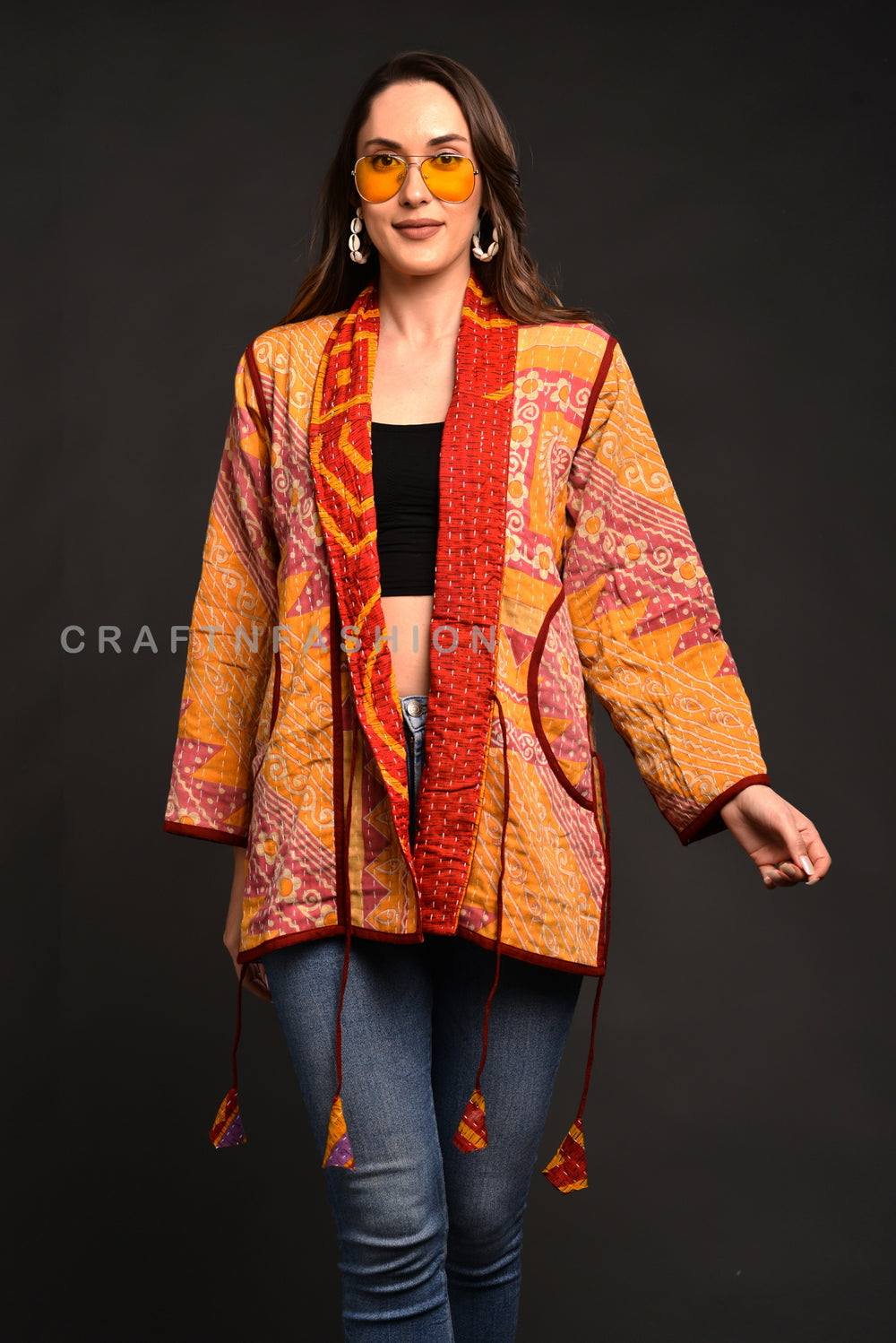 Indian Cotton hand blocked Printed kantha jacket. Best Suitable for Formal wear / Fashion wear / Summer wear / Overcoat / Kimono / Winter Wear