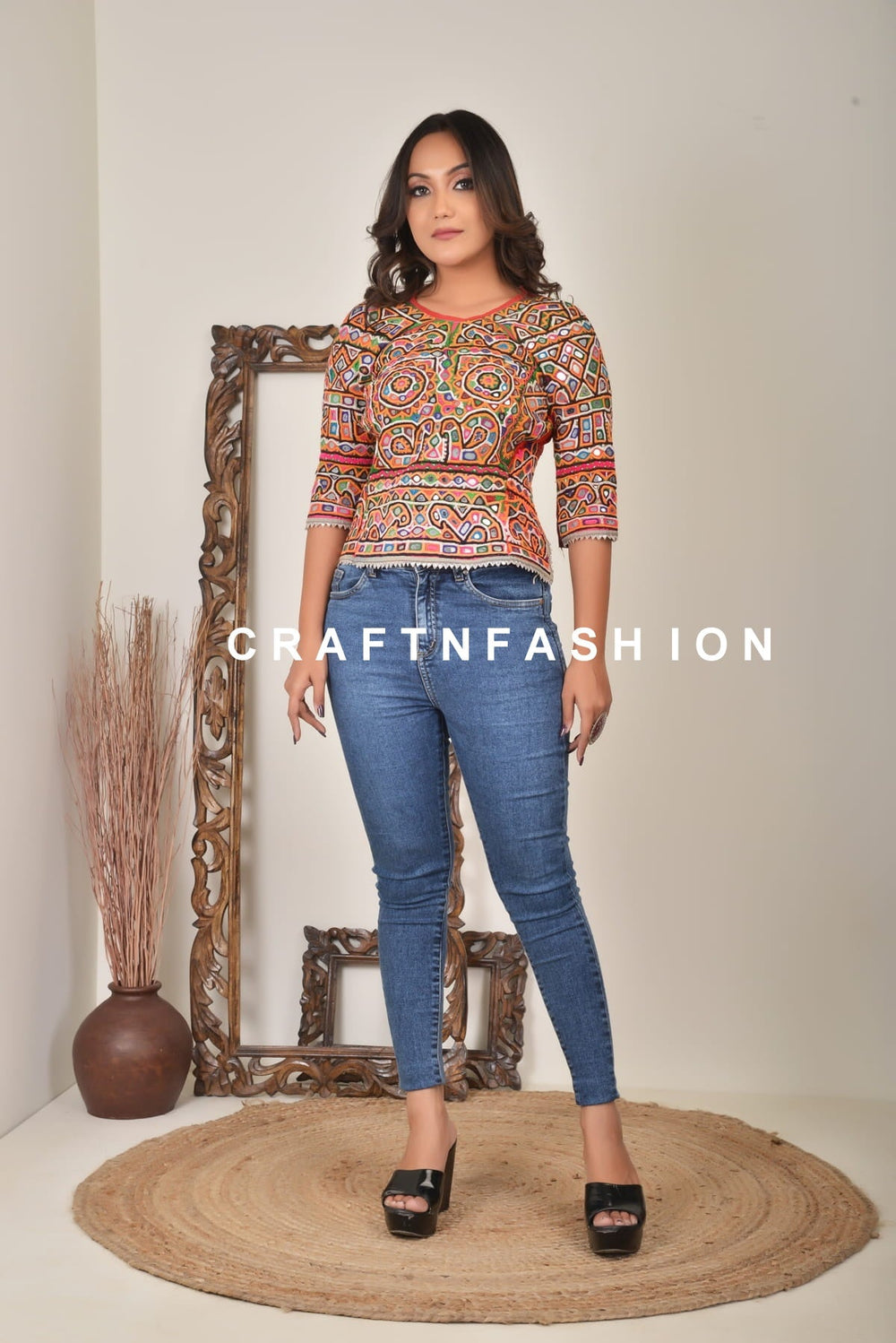 Blusa vintage de trabajo tribal hecha a mano Blusa sin espalda Kapda adornada con bordado a mano y trabajo de espejo. Esta es una blusa sin espalda bordada vintage coleccionable y bien conservada.
