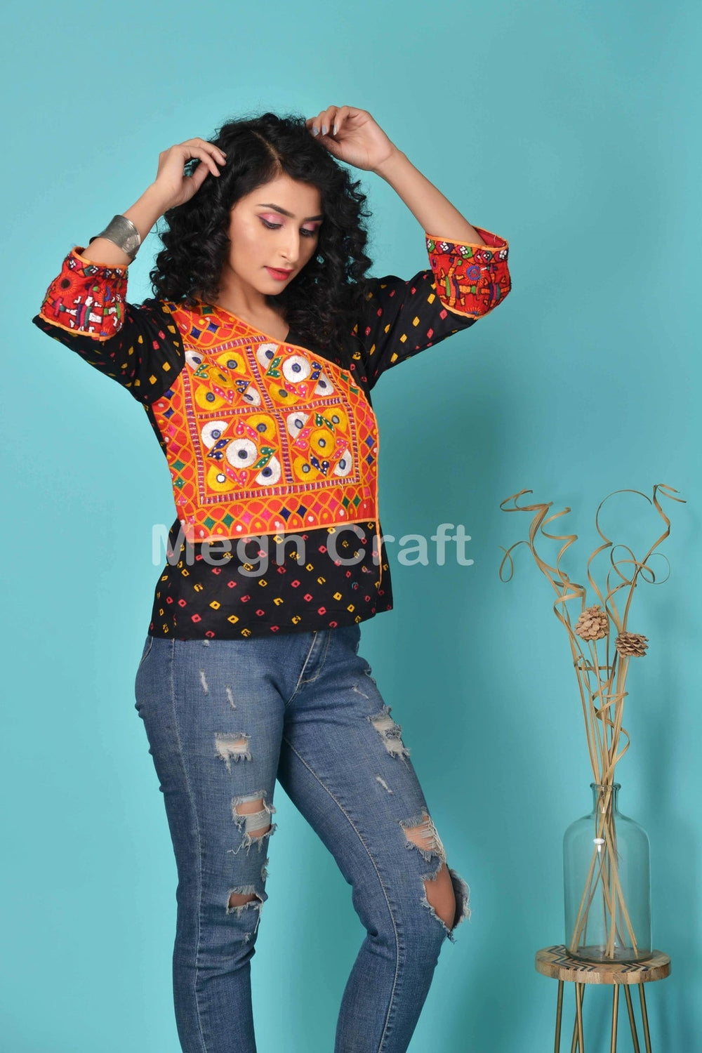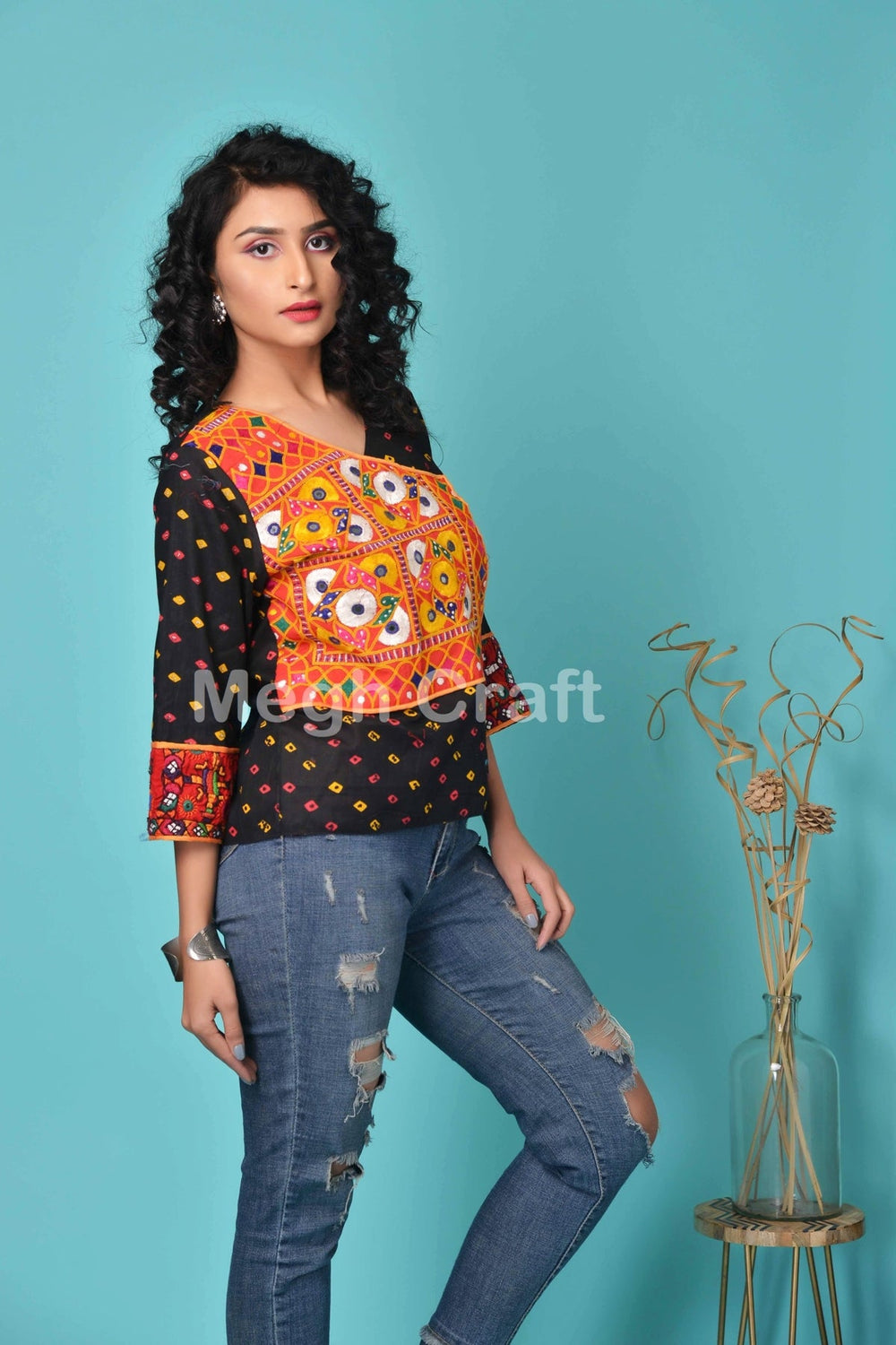 Chaqueta bordada a mano de Gujarat confeccionada con un aspecto brillante y llamativo. Los patrones de bordado tradicionales te harán lucir moderna y hermosa.