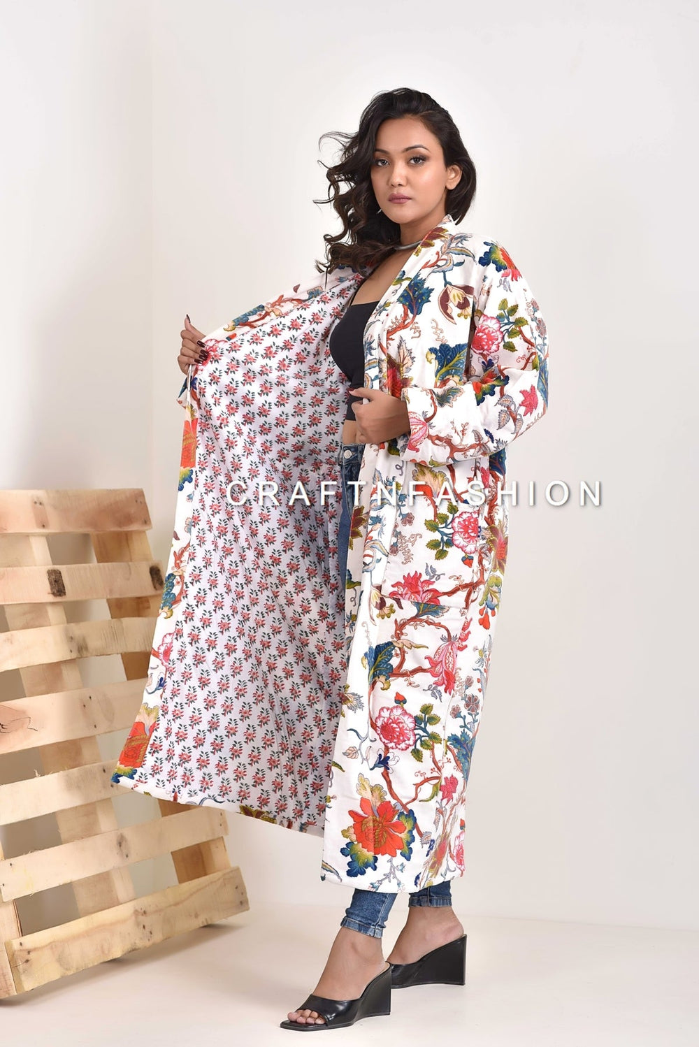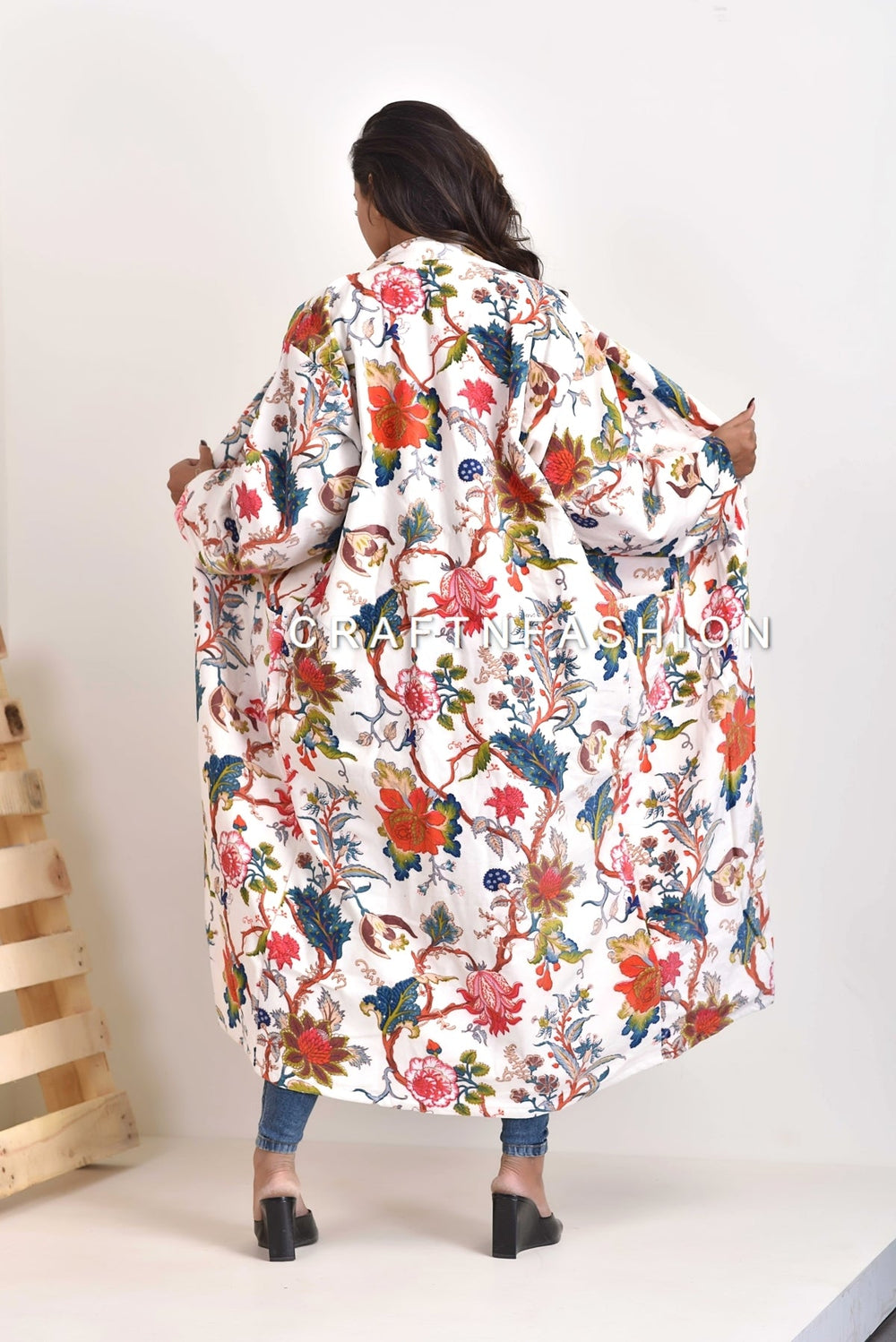 Ropa de invierno de diseñador, chaqueta de terciopelo de moda bohemia, abrigo estilo kimono con cinturón a juego, forro estampado en bloque.