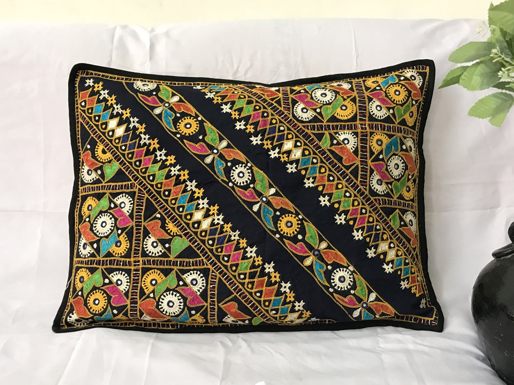 Traditional Gujarati Embroidery Work throw pillowcase cushion.