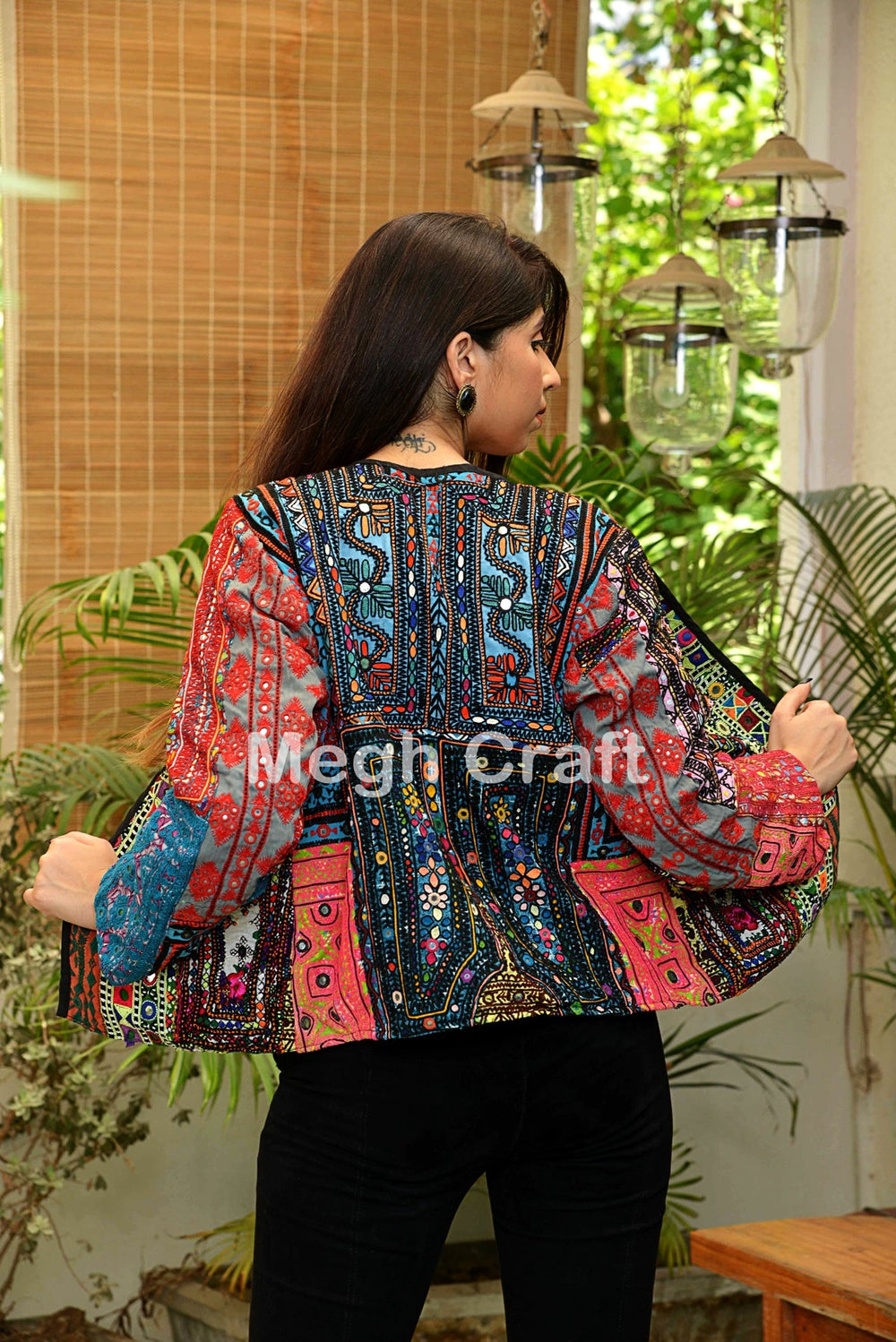 Indio bordado a mano espejo trabajo parche trabajo Banjara chaqueta, chaqueta bomber, chaleco.