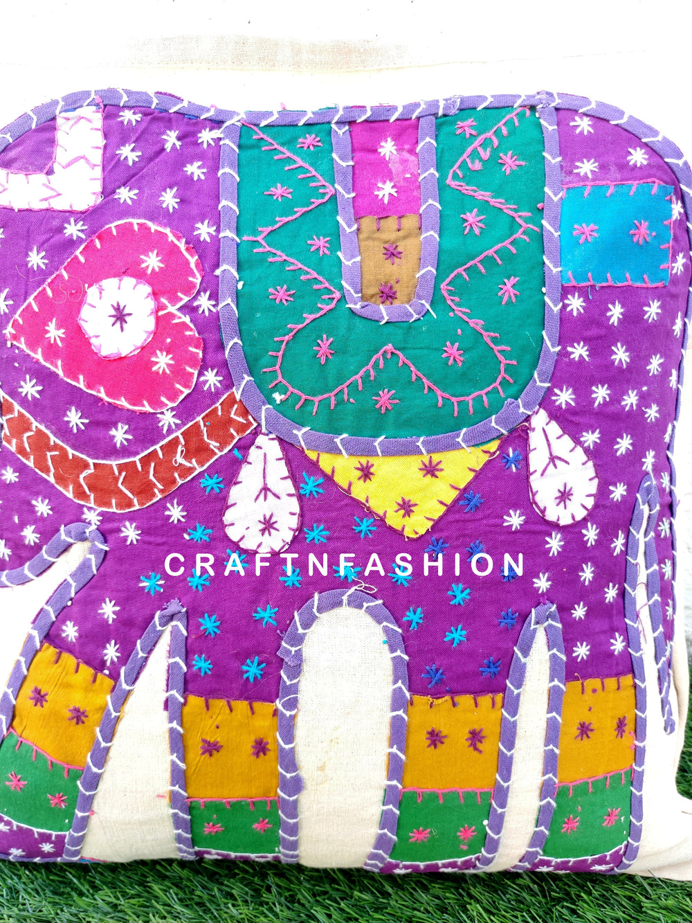 Designer Handcrafted Indian Elephant Embroidery Kantha Handmade Cushion Covers (FOUR PIECES).
