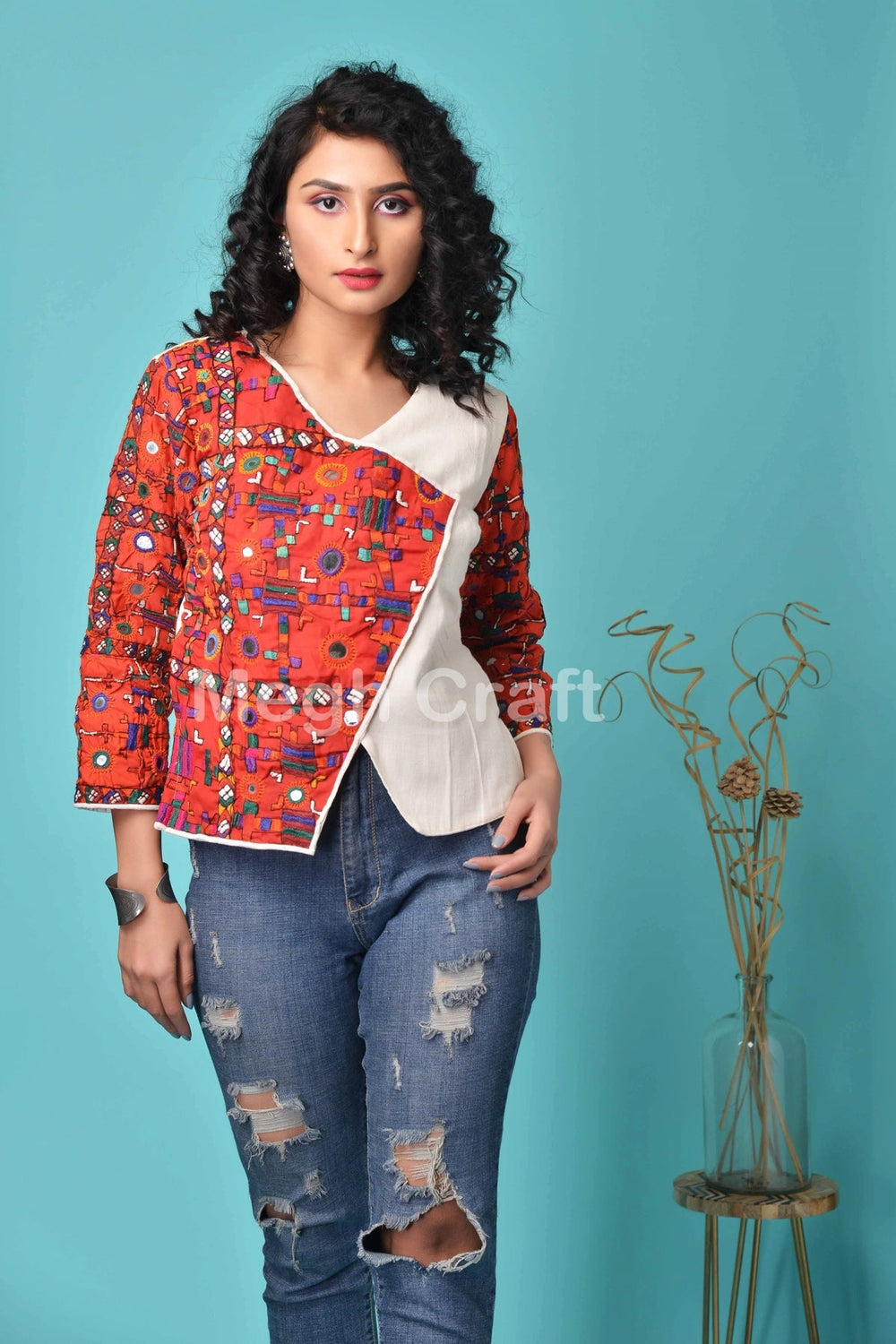 Vintage bordado a mano espejo trabajo Kala chaqueta bomber de algodón. Ideal para moda bohemia, ropa tradicional, ropa de fusión, ropa de moda de invierno y regalo para ella.