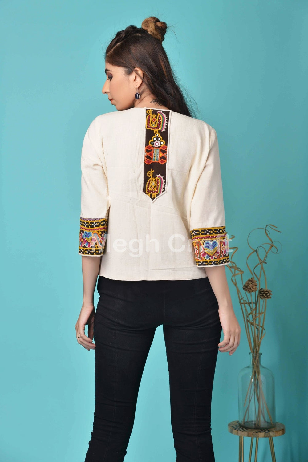 Indio Gujarat Kutch bordado espejo trabajo gitano patchwork seda boho chaqueta top