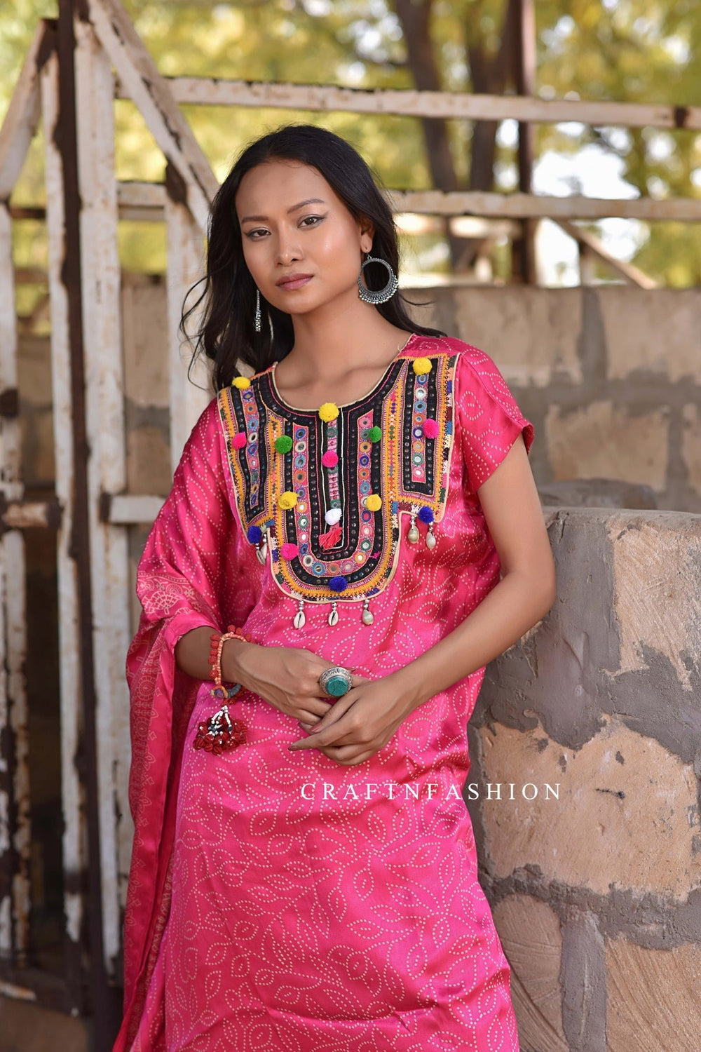 Diseñador exclusivo indio tradicional vestido bohemio estilo banjara vintage Kaftan vestido con pantalón Dhoti. Ideal para estilo bohemio gitano, moda bohemia, festivales, Navratri y moda.