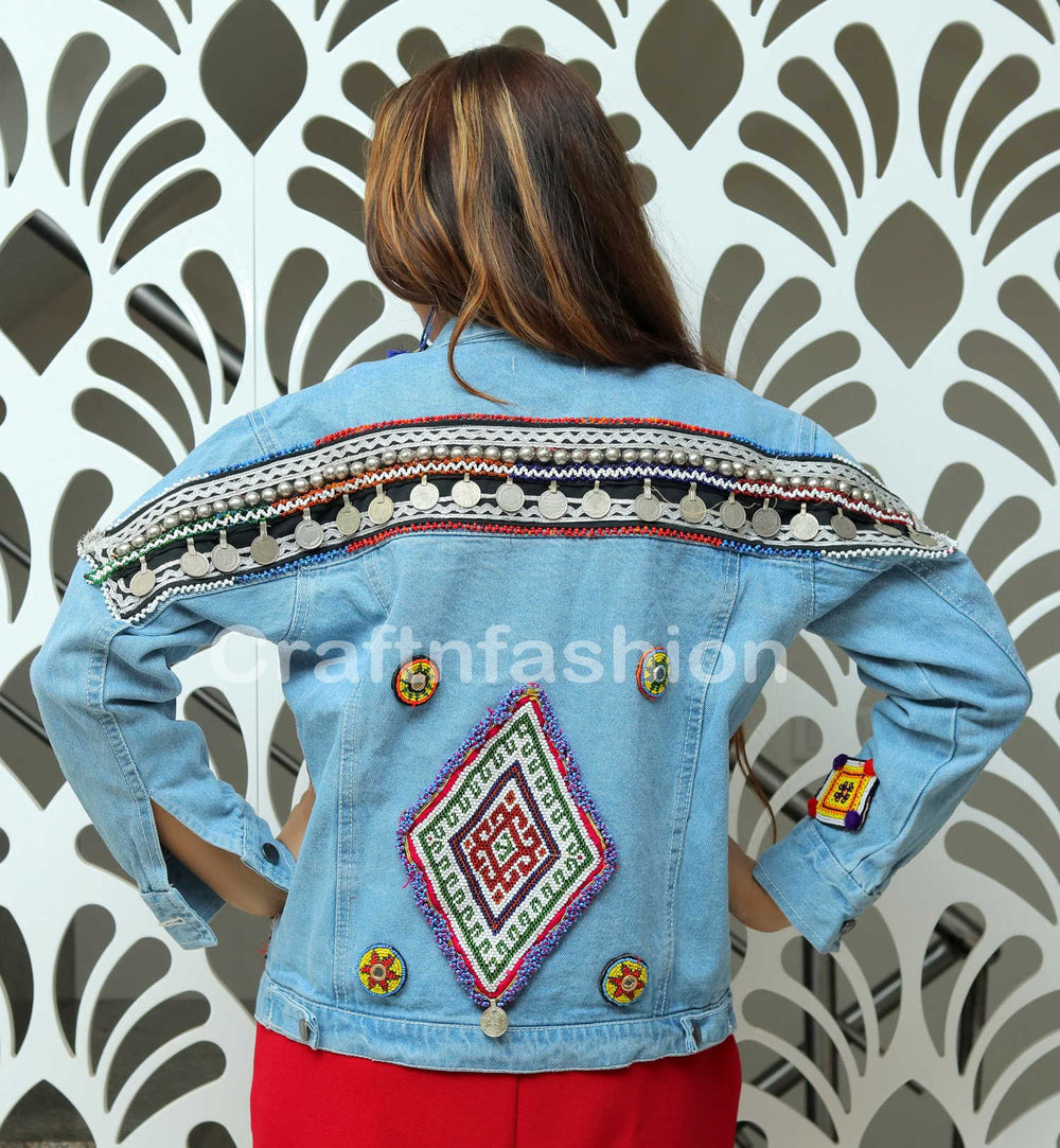 Vintage cuentas espejo trabajo lentejuelas Kutch parche trabajo adornado boho chaqueta de mezclilla, chaqueta bomber, chaleco.