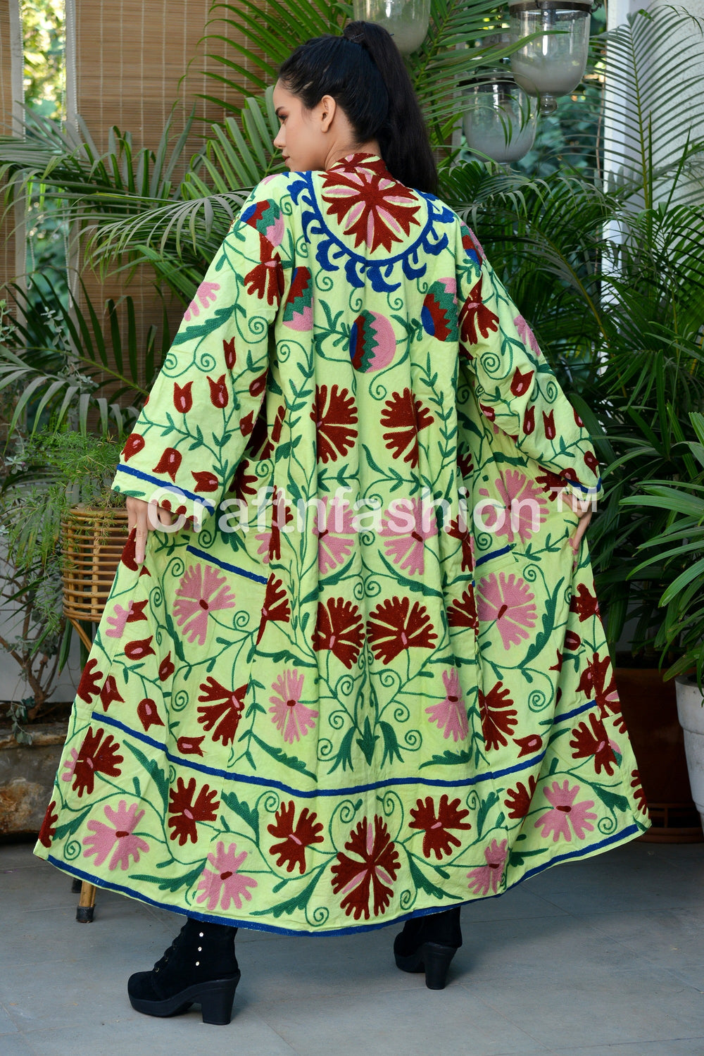 Indian Handmade Embroidered Boho Fashion Suzani Kimono Jacket Long.