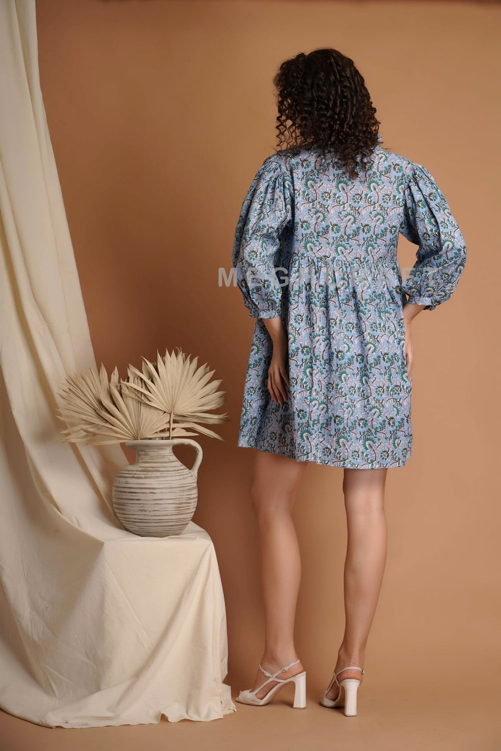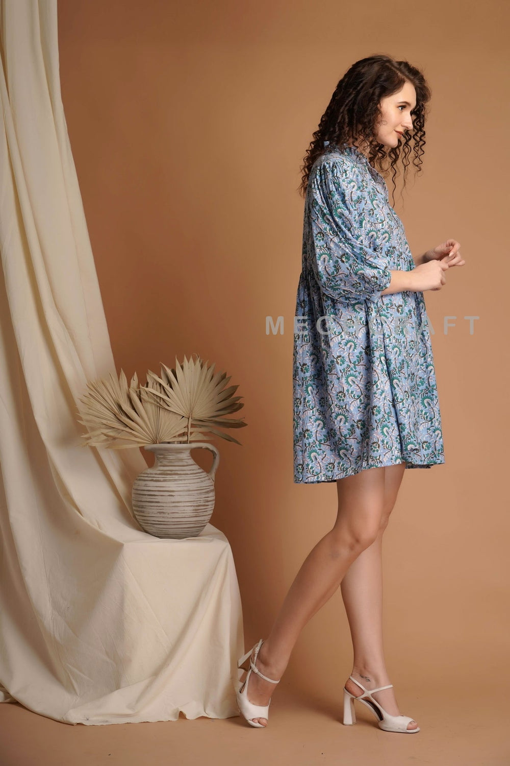 Boho Fashion Beach Wear Hand Block Printed Dress, Top.