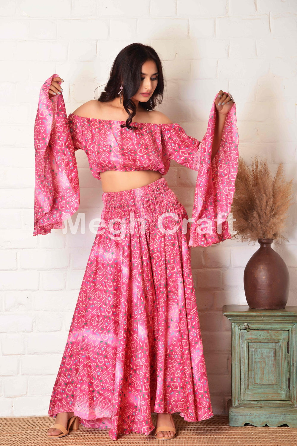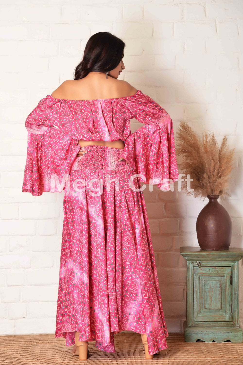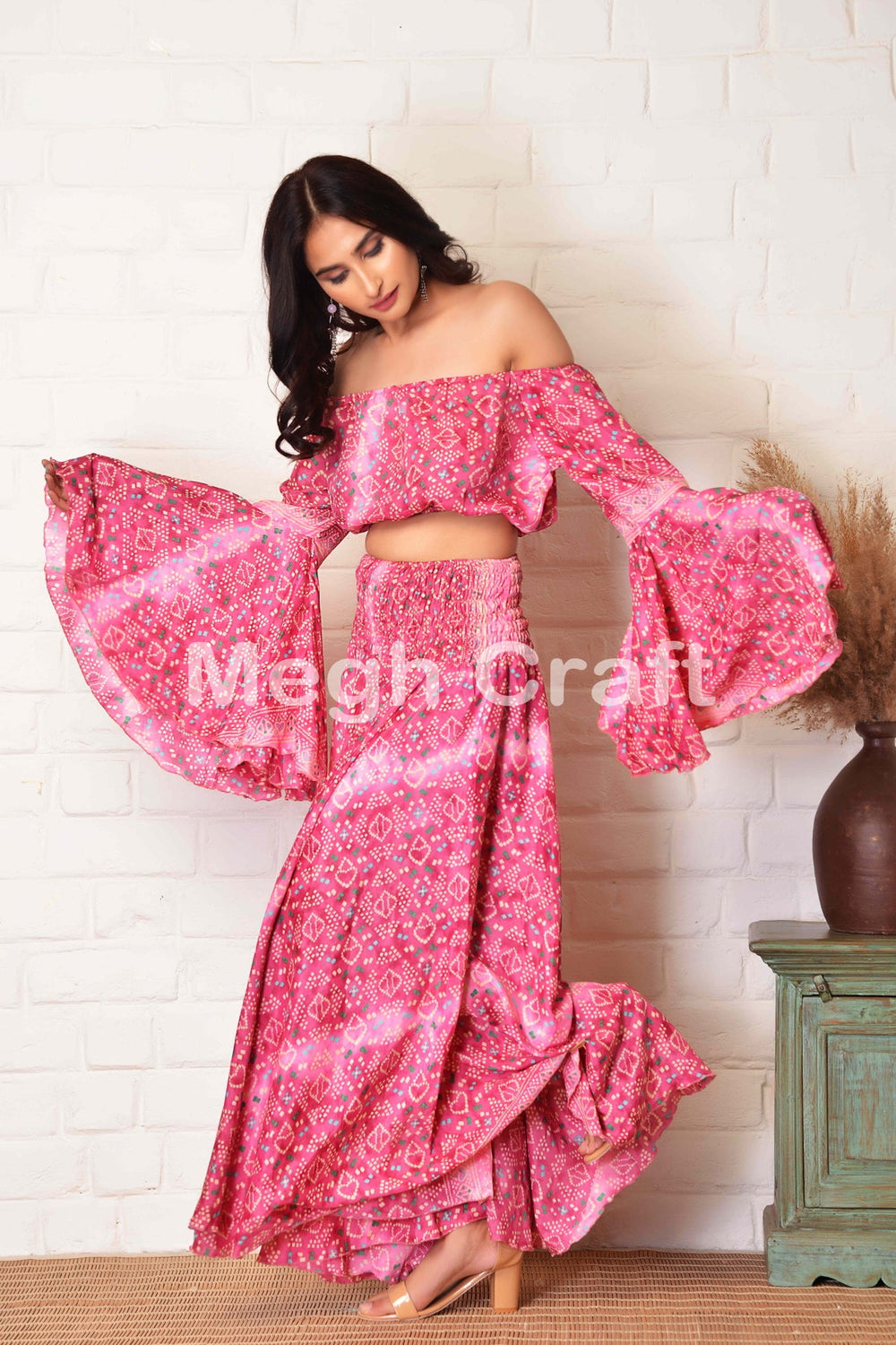 Designer Off Shoulder Bell Sleeve Tube Top & Umbrella belly trouser pant Set with full flair.