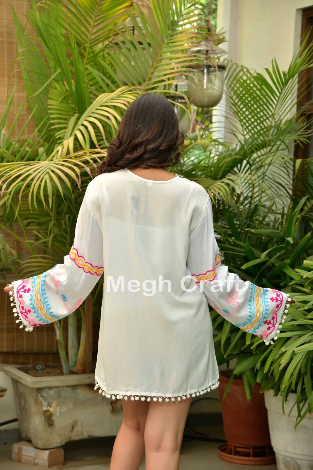 Designer Rayon Beach Wear Embroidered Mini Dress. Best Suitable for Beach Wear, Summer fashion, Sustainable fashion, Boho Fashion & More.