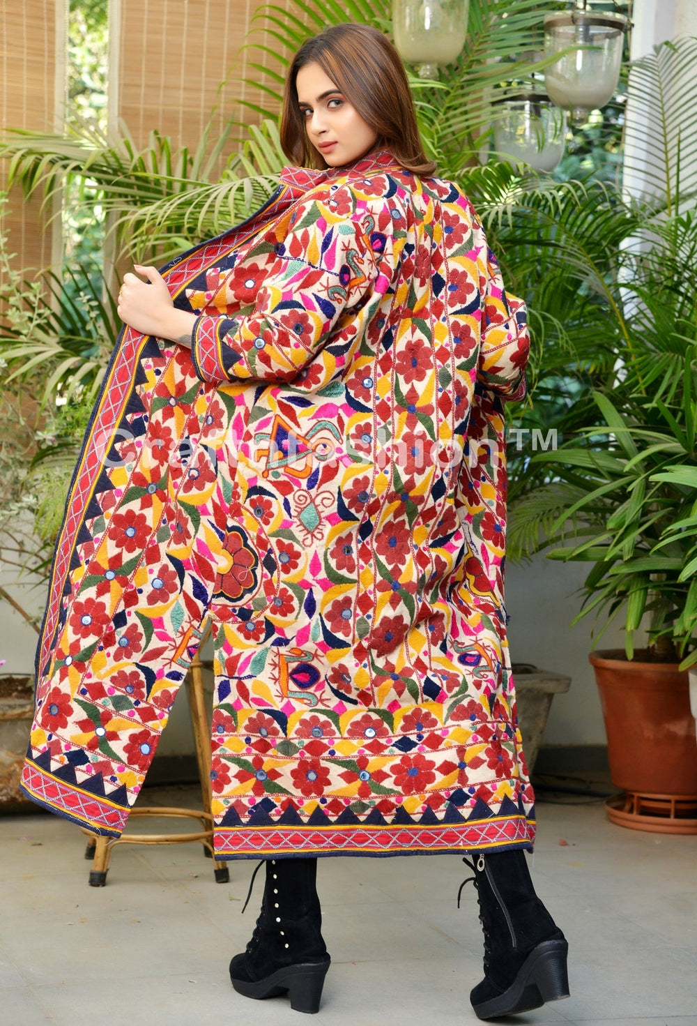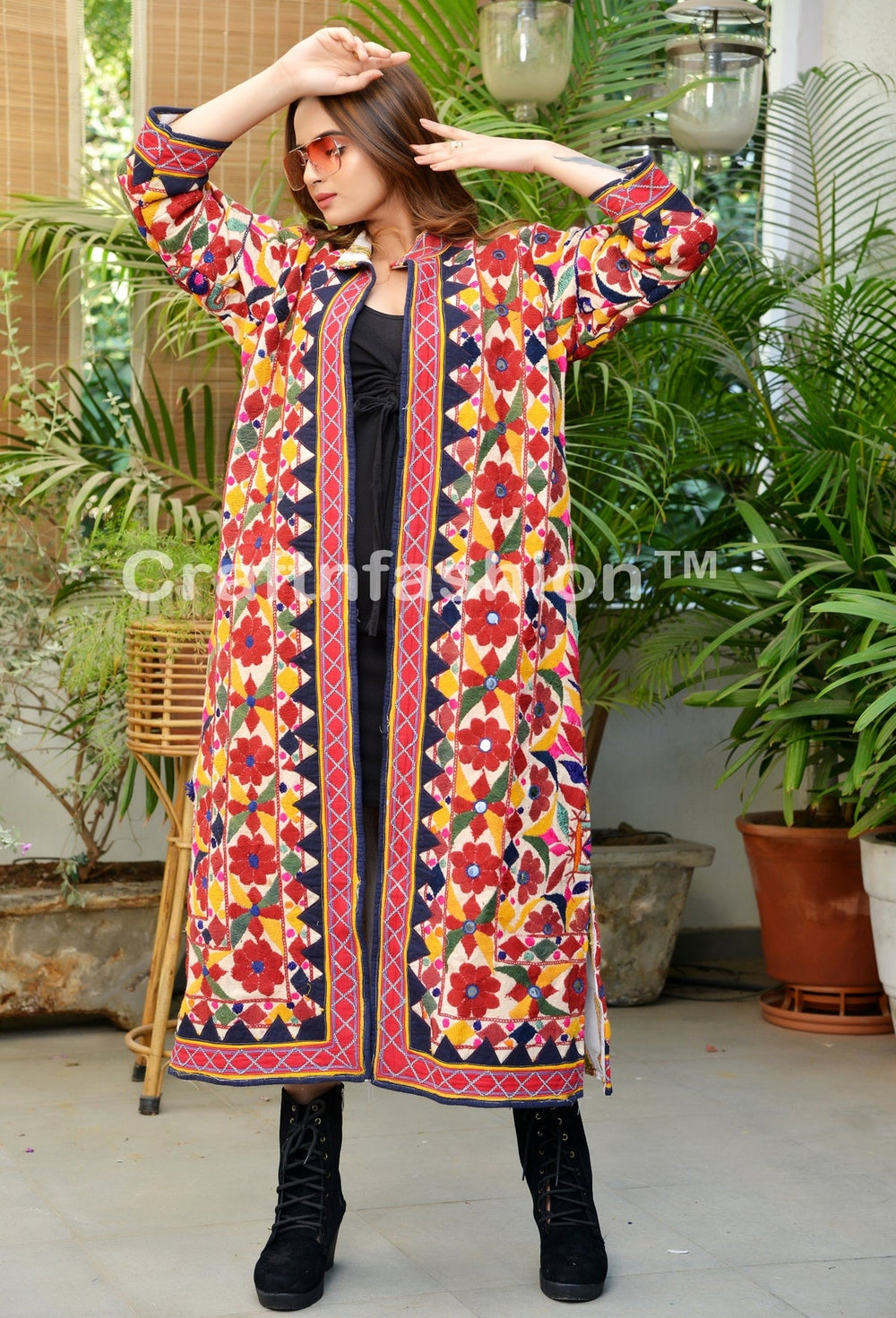 It is made from Gujarati Vintage Kutch Tribal Nomadic fabric. We make our all Bohemian Banjara Jackets from very well collectible vintage fabric which will take 2-3 months to finish it by Gujarati Trible Ladies. This Banjara Style hand embroidered long jacket is one of kind piece which is rarely available. Best Suitable for Boho Fashion , Gothic look , Bohemian Style , fusion wear & gypsy fashion wear.