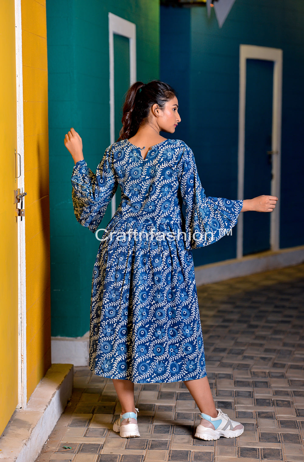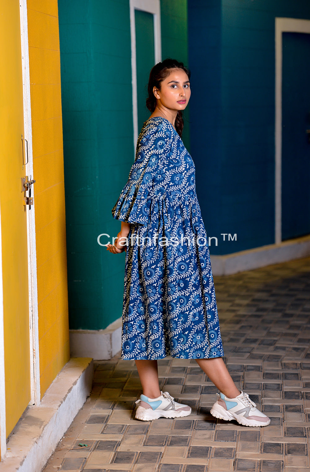 Designer Boho Fashion Hand Block printed fashionable Cotton dress, tunic - top, natural dye colors.