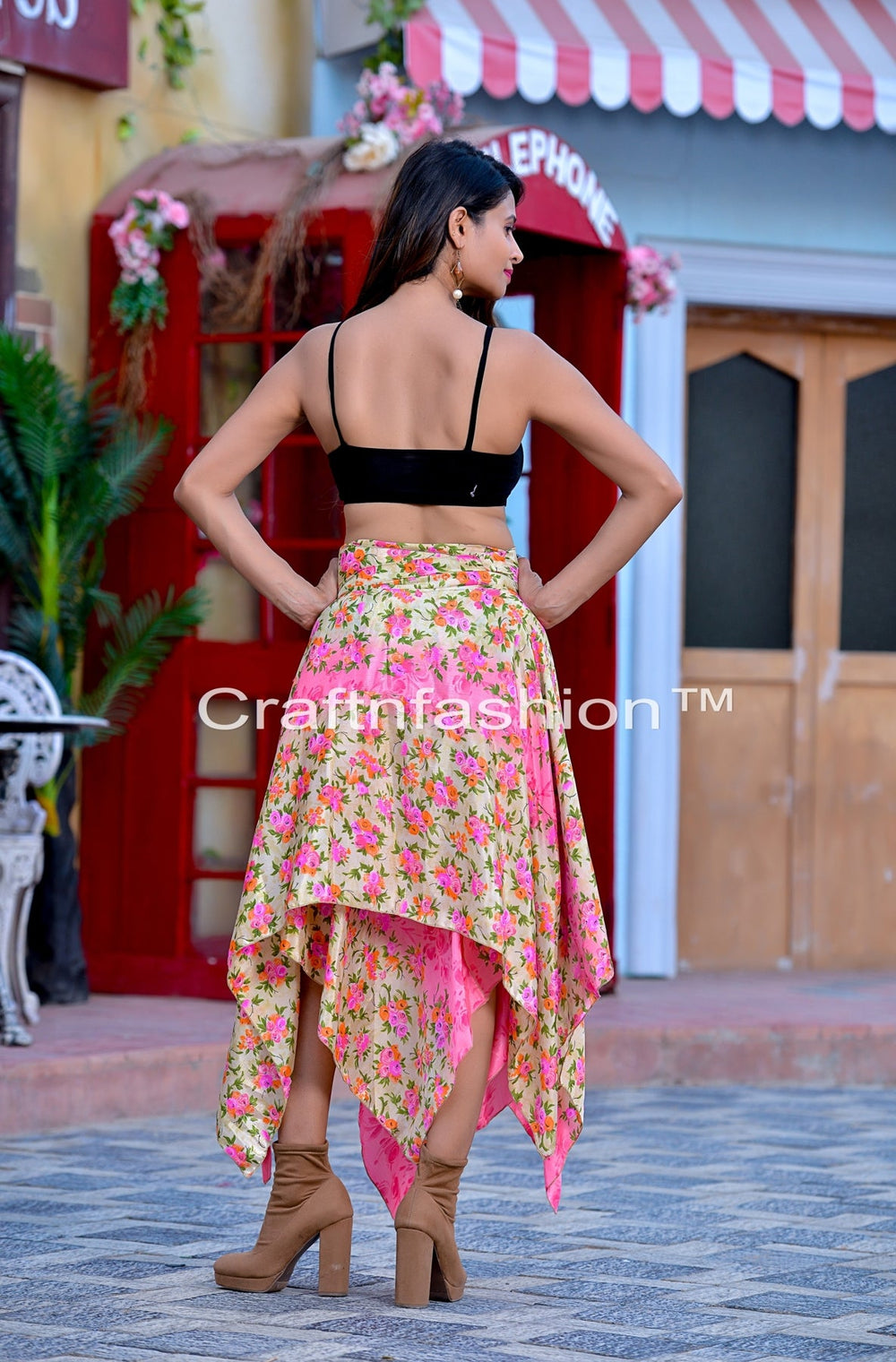 Indian Vintage Recycled Silk Sari Zigzag Style Wrap Around Skirt.