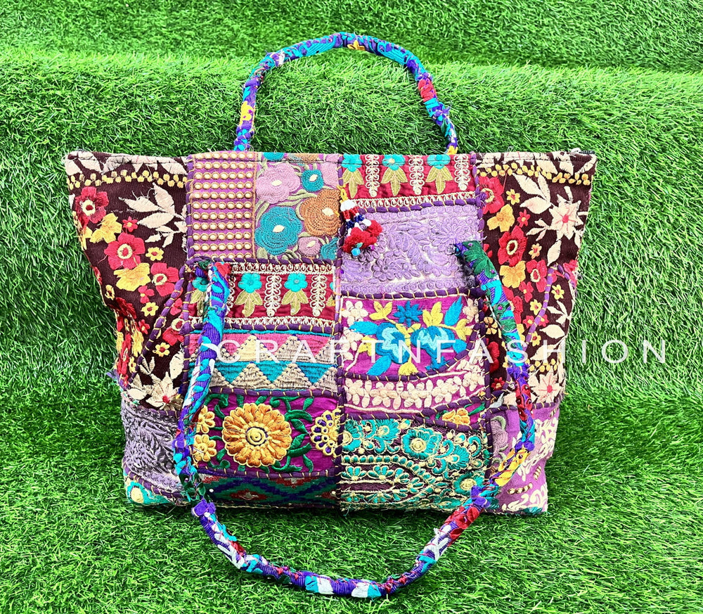 Exclusive Bohemian Fashion Patchwork Tote Bag. This is an authentic Hand embroidered bag from the tribal nomads of Gujarat called Banjara.