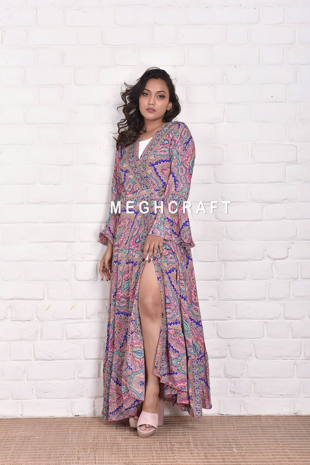 Bohemian Silk Wrap Kimono Dress Bell Sleeve. Long Length, Loose Fit, Soft & Comfy.