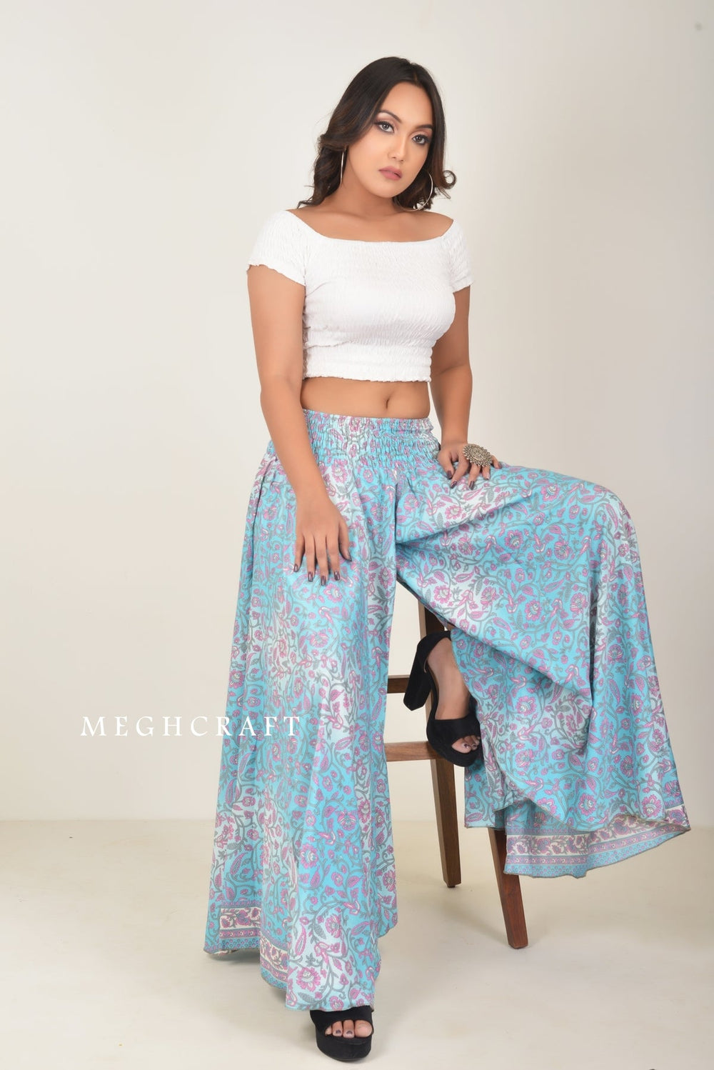 This Trousers are made of Vintae Recyle Silk Sari Fabric with Elasticated Waist Which makes it more flexible and Free size for any kind of Waist. Best suitable for Everyday Wear, Casual Wear, Yoga Wear, Boho Fashion Wear, Dance Wear Beach wear , Resort and Lounge wear.