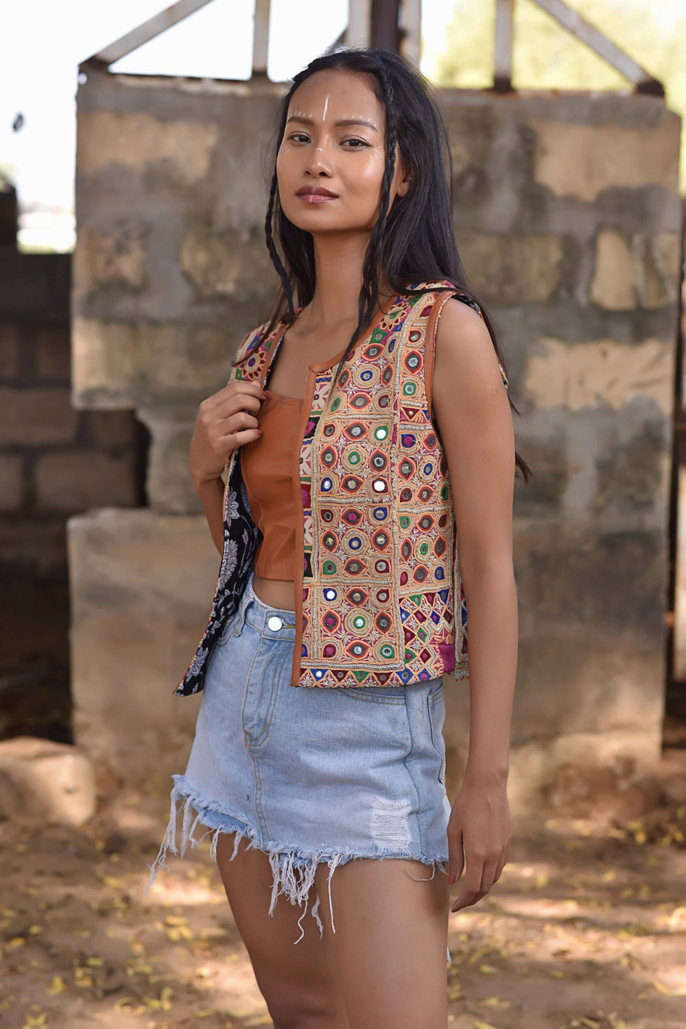 Hand Embroidery Mirror work Jacket Crafted By Skilled Indian Gujarati Artisan Having both the Side Embroidery Work with Bright & Eye catchy Look.