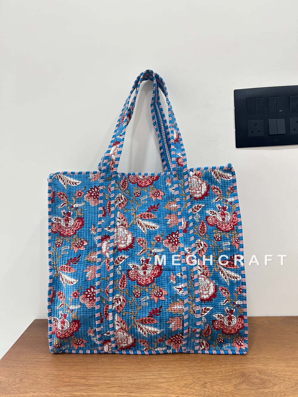 #BlockPrintBag #IndianBlockPrint #QuiltedToteBag #CottonToteBag #BohoTote #HandmadeTote #IndianTextiles #BohoBeachBag #EcoFriendlyBag #ShoppingTote