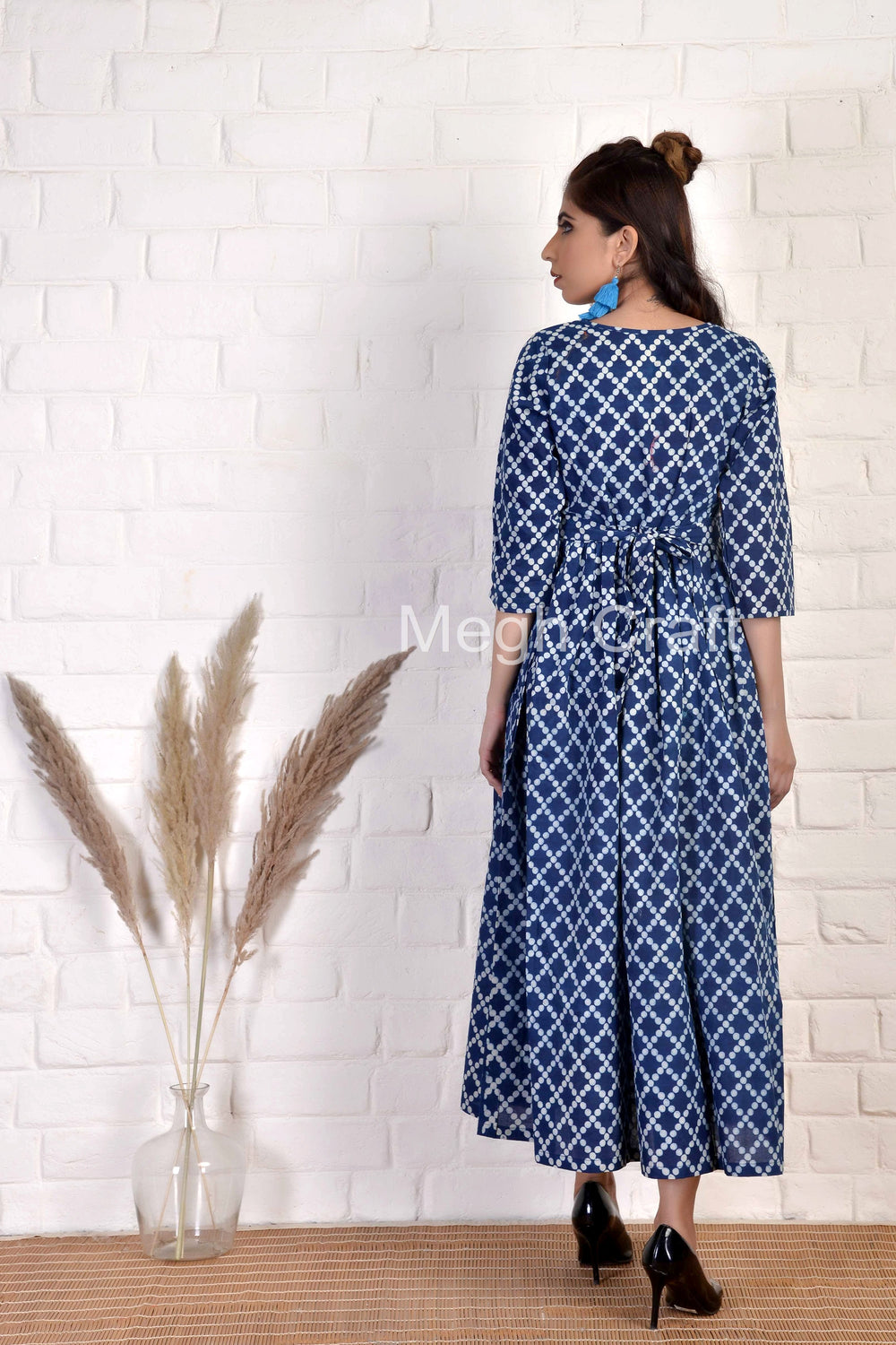 Designer Cotton Slit Maxi Dress, Cotton Dress, Designer Hand Block printed fashionable Cotton dress, tunic - top, natural dye colors.