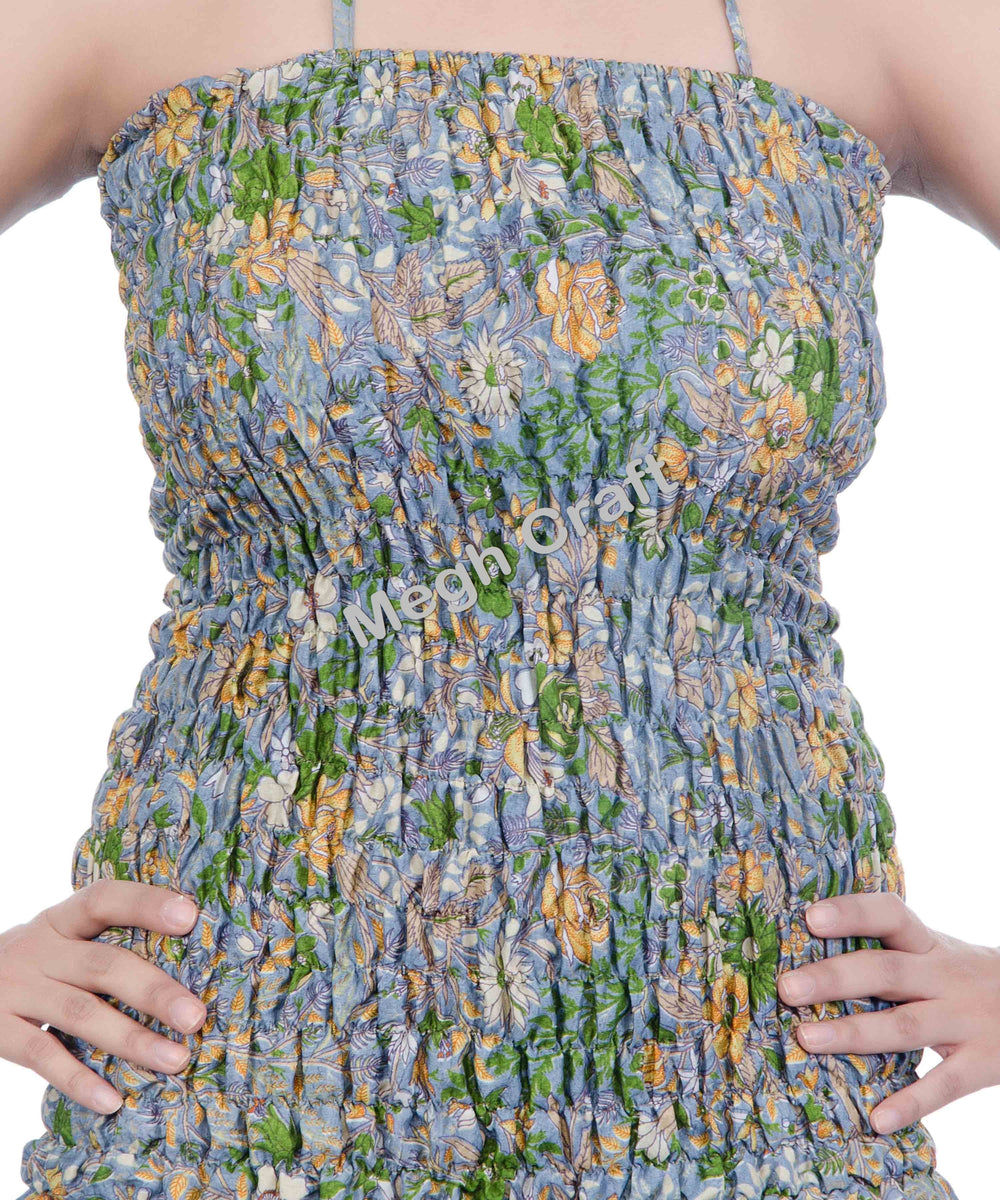 Bust : Stretch up to 36-38" inches (Smocked on Bust and waist area)
