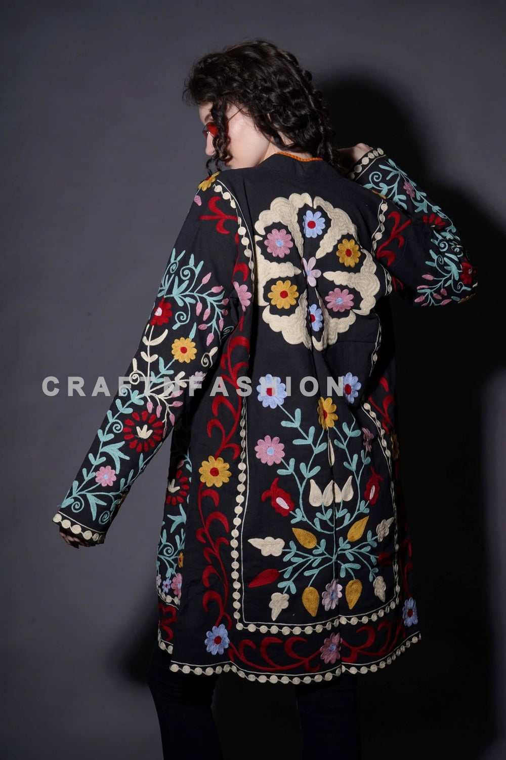 Indian Floral Suzani Embroidery Jacket, Suzani Coat, Handmade Long Jacket.