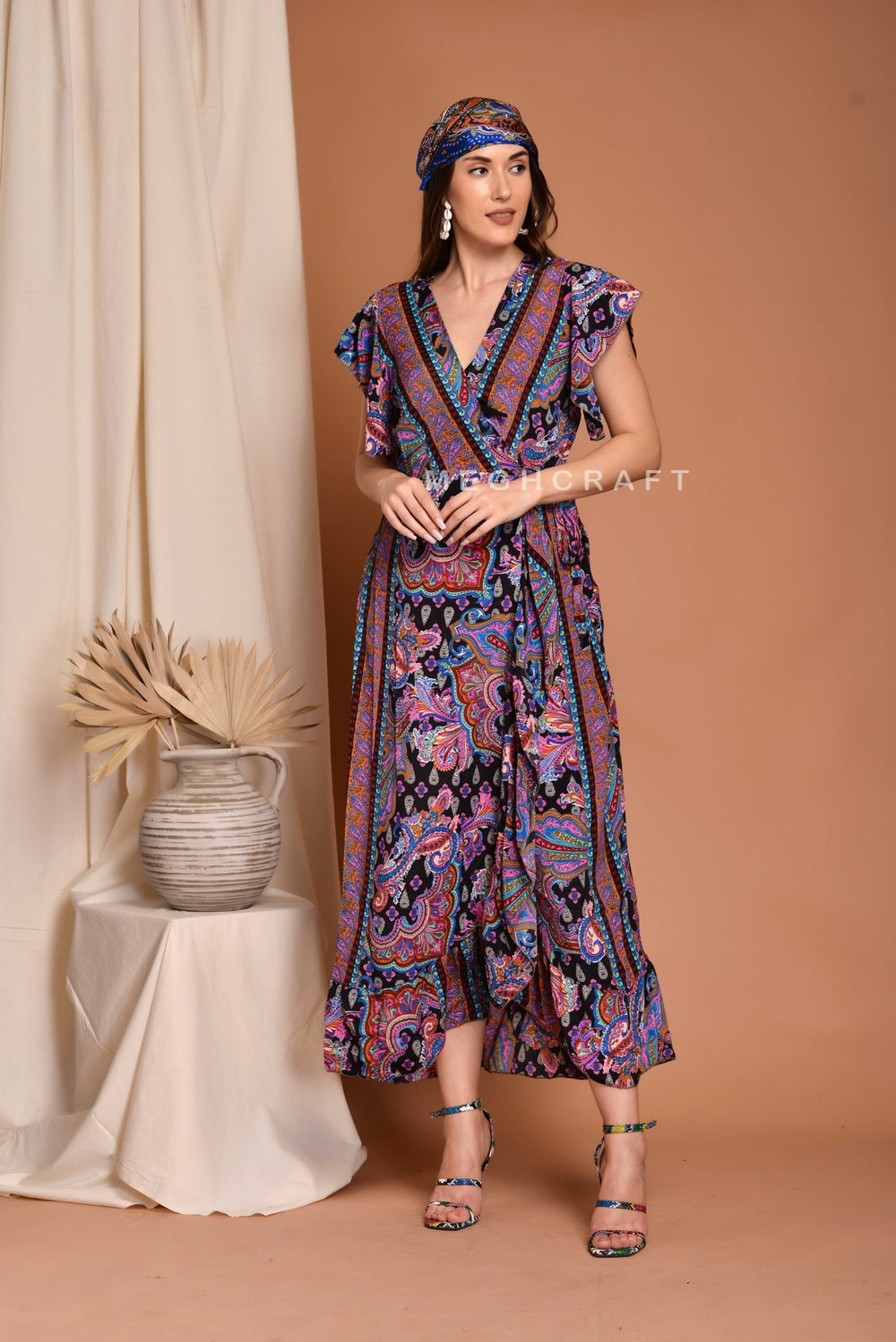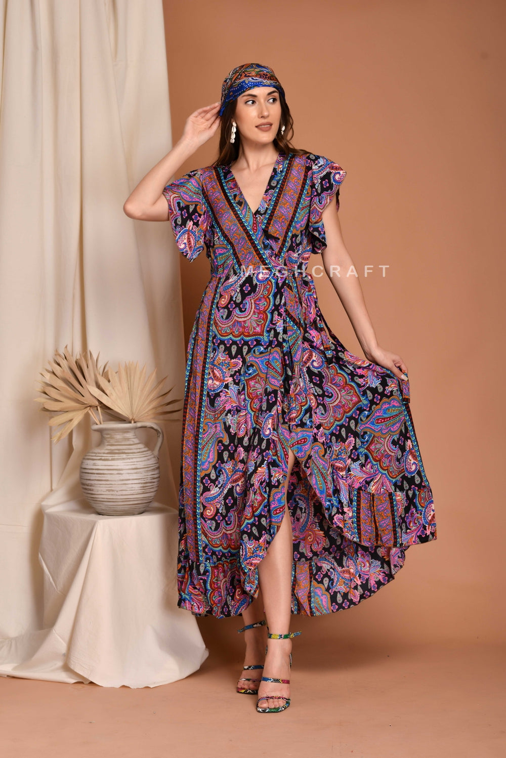 Indian Designer Long Floral Printed Wrap around Kimono Robe Cardigan.