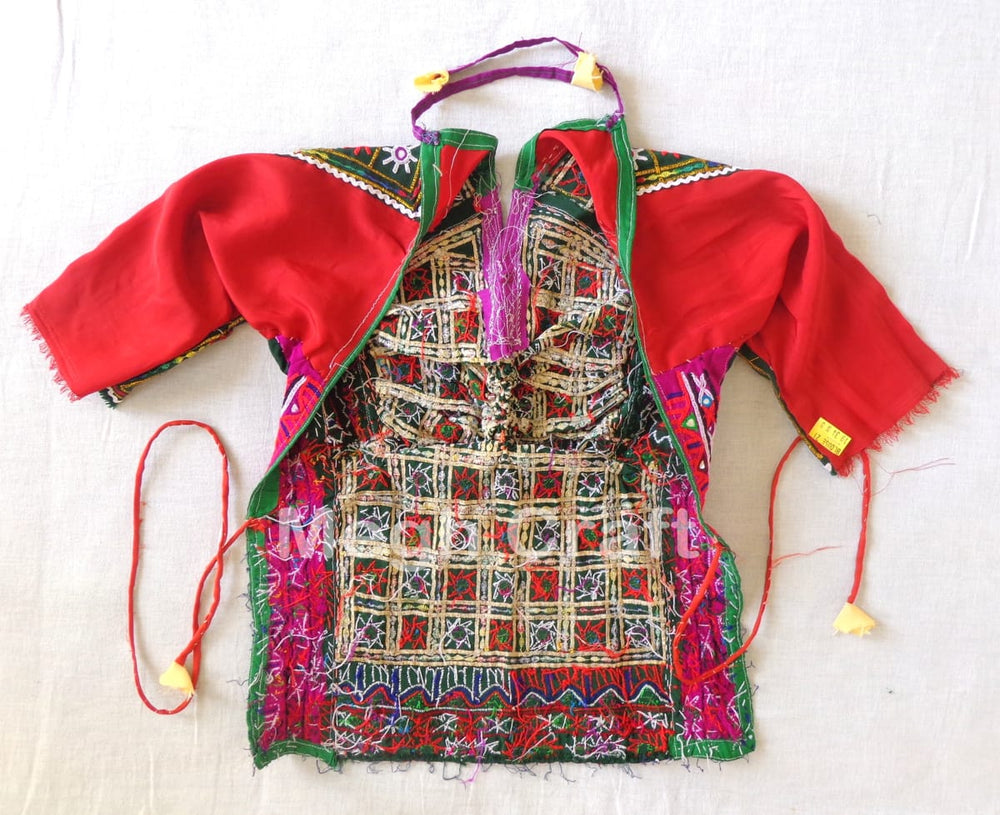 Indian Vintage Hand Crafted Tribal work Blouse Kapda Backless Blouse Embellished with Hand embroidery & Mirror Work. This is collectible well preserved vintage Embroidered Backless blouse.