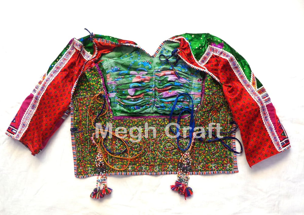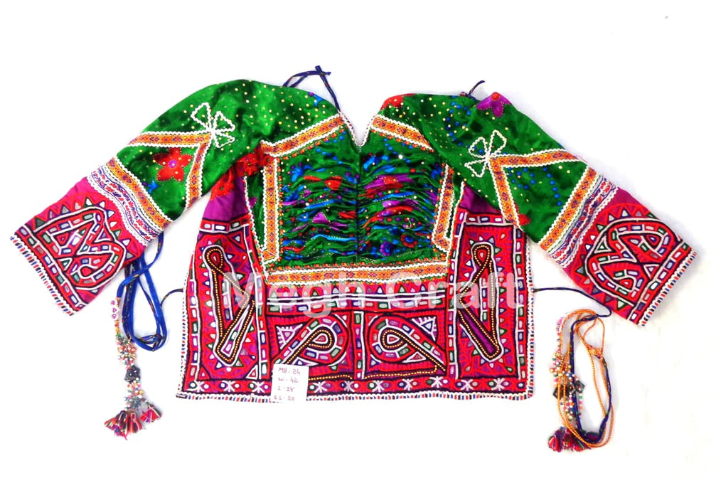 Hand embroidery Blouse, Bajara Blouse, Kapda Backless Blouse , Indian Vintage Hand Crafted Tribal work Blouse Embellished with Hand embroidery & Mirror Work. This is collectible well preserved vintage Embroidered Backless blouse.