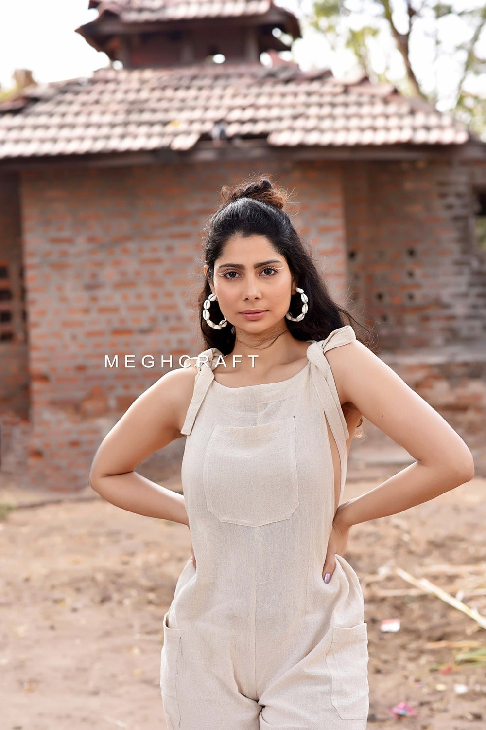 This Jumpsuit In Free Size, It Will Fit Your Size Perfectly with Tie Belts on Shoulder to adjust as per your size. With Natural Dye Color.