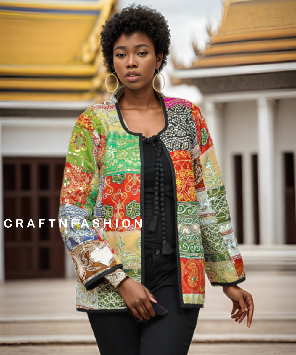 Indian Hand Embroidery Mirror work Jacket Crafted By Skilled Indian Gujarati Artisan Having both the Side Embroidery Work with Bright & Eye catchy Look.