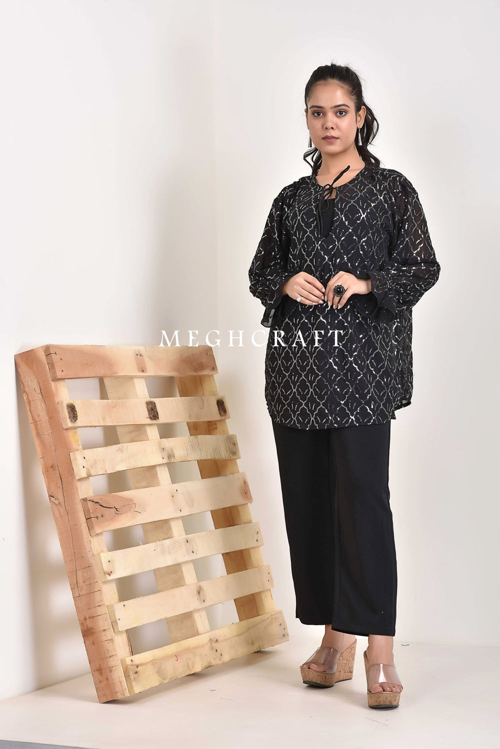 Designer Chiffon Sequin Embroidered Shirt Dress. Best Suitable for Beach party wear , Cocktail Party, Evening wear , Club wear , Party wear & More.