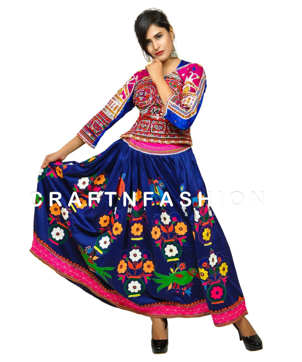 This is collectible well preserved vintage Kutch Hand Embroidered Skirt and Backless blouse. Best Suitable for Traditional Wear, Festival Wear, Navratri Wear, Boho Gypsy Fashion Wear and Bohemian Wear.