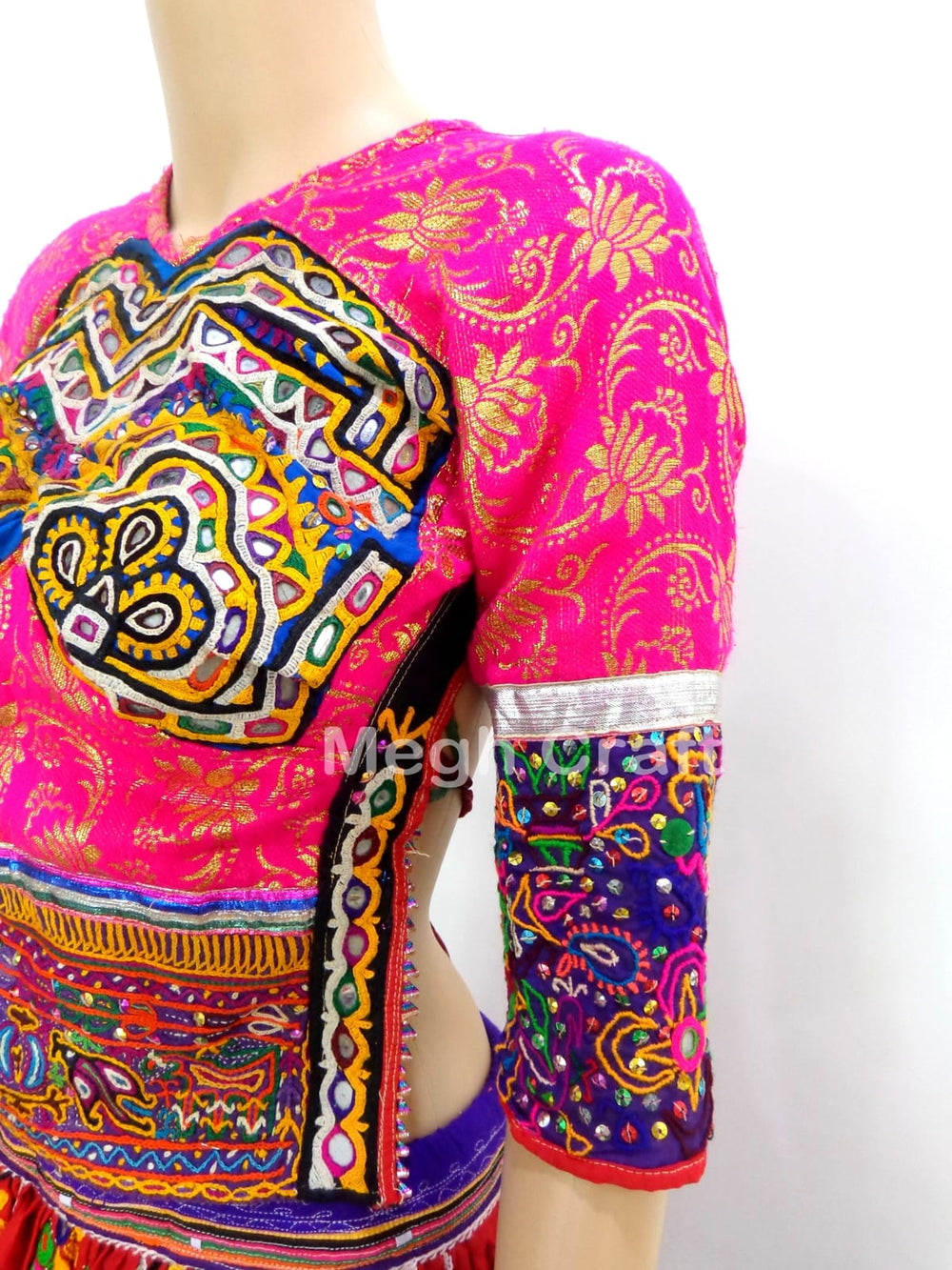 Kutch Aahir work Blouse, Kapda Backless Blouse, Indian Vintage Hand Crafted Tribal work Blouse Embellished with Hand embroidery & Mirror Work. This is collectible well preserved vintage Embroidered Backless blouse.