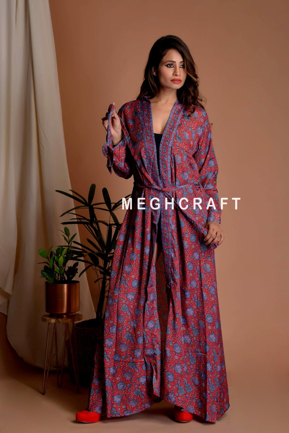 Designer Bohemian Poly Crape Silk Kimono Robe with Belt. New Latest Silk Kimono Robe For Women. Women's Kimono Outfit