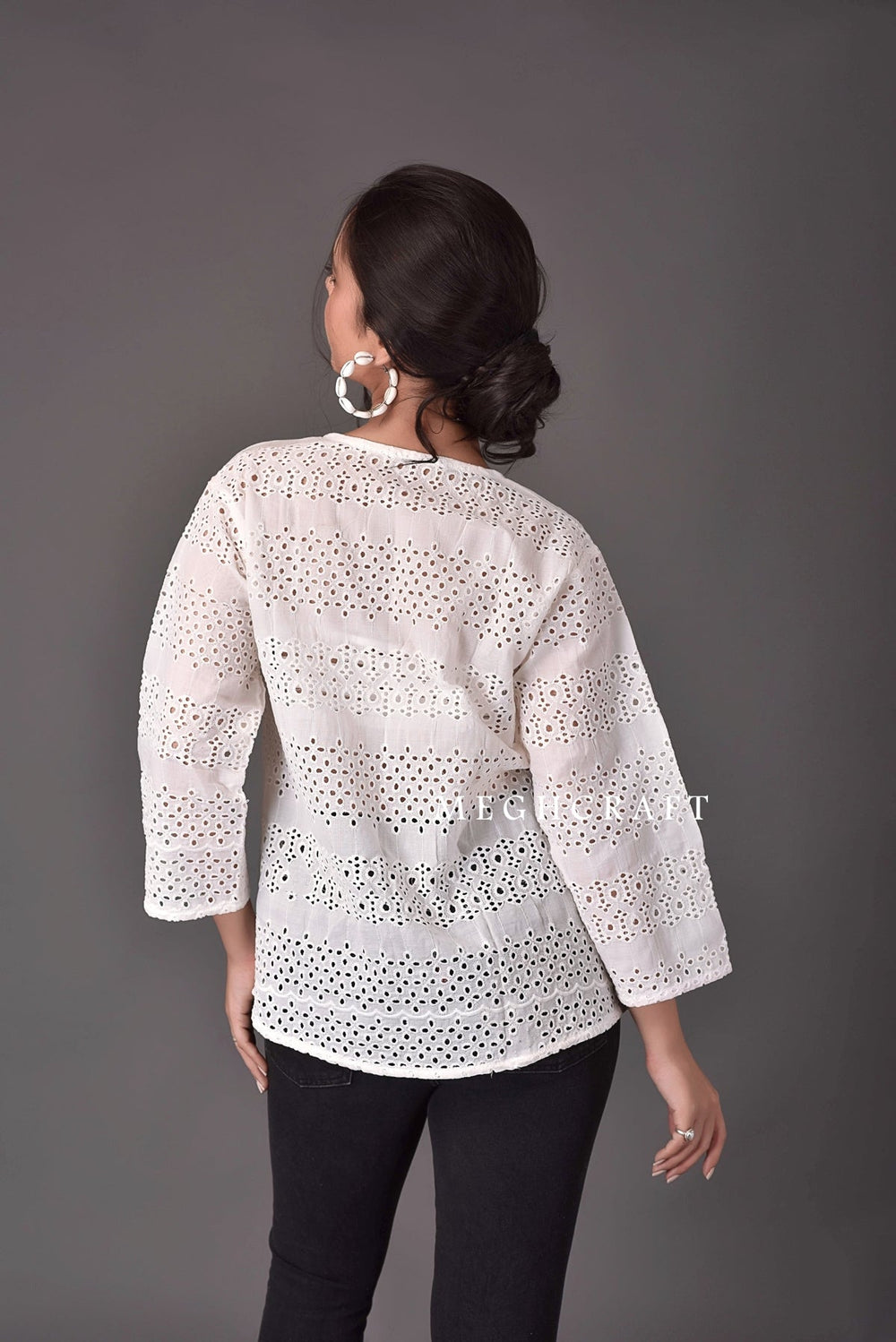 Designer Schiffli Embroidered Cutwork Midi Dress. Best Suitable for summer wear ,beach wear ,wedding wear, bridesmaid's dresses & fashion wear.