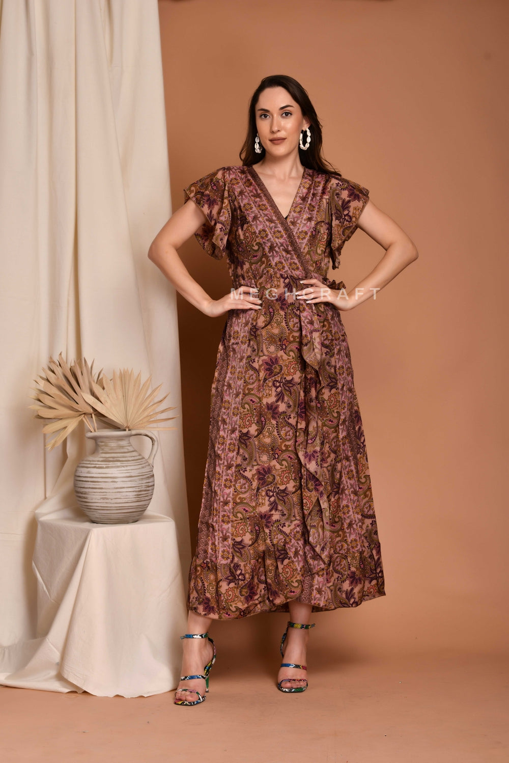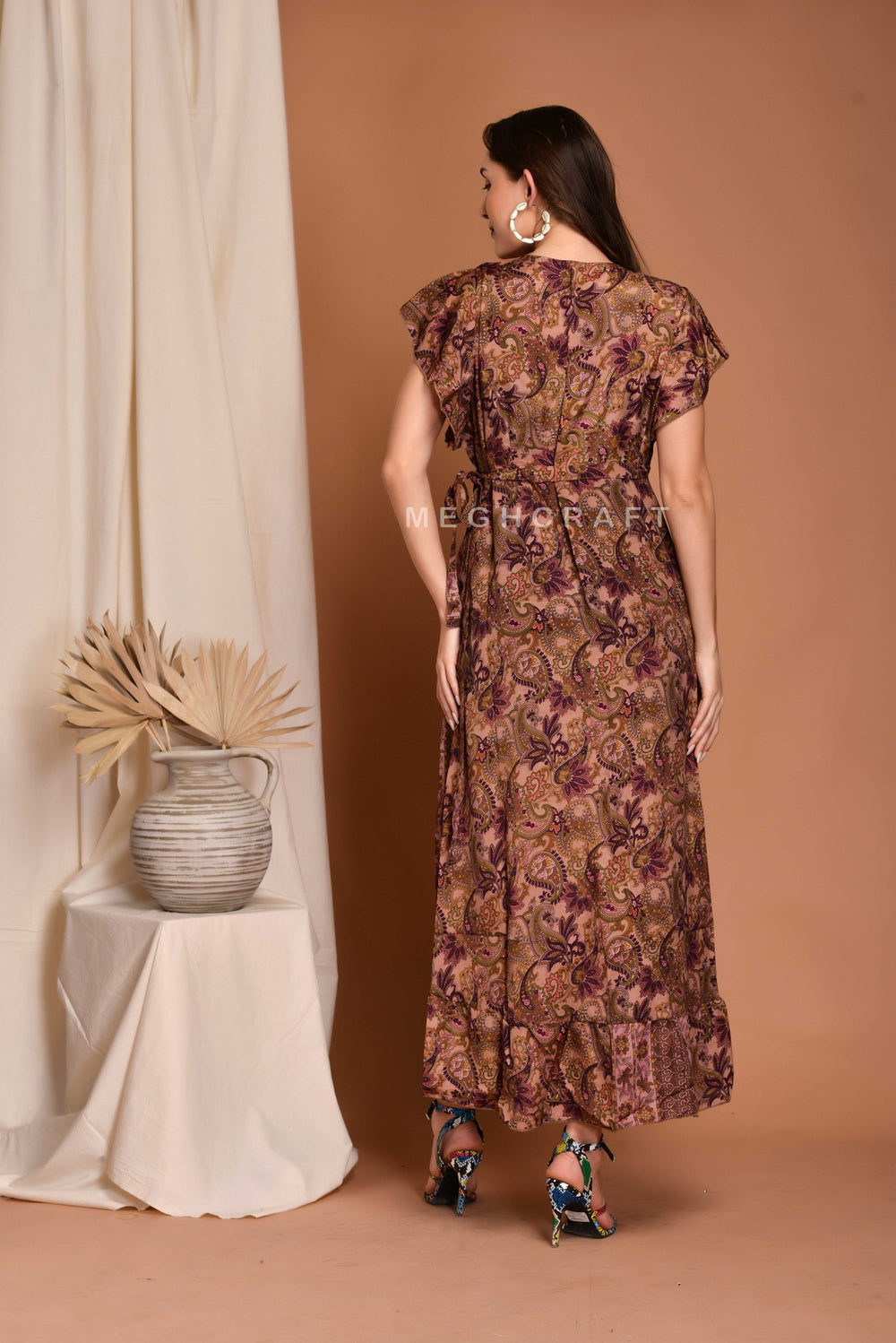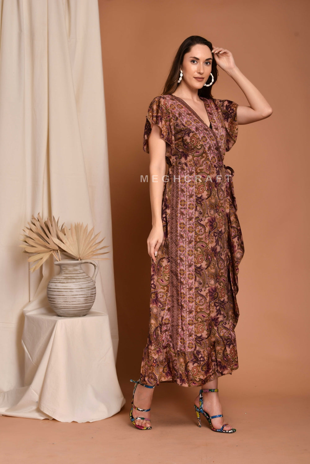 Indian Designer Long Floral Printed Wrap around Kimono Robe Cardigan.