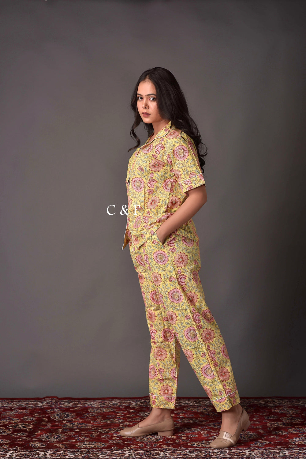 Cotton Hand block Printed Sleepwear Indian Cotton Pajama Set.