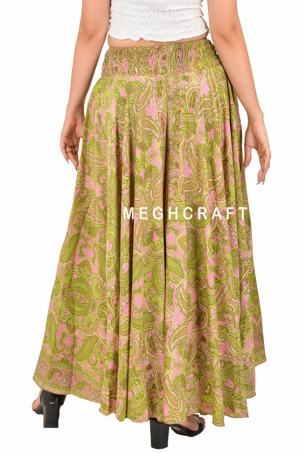 Indian Designer Silk Wide Leg Trouser Palazzo Pant with Smocked Waist Free Size.