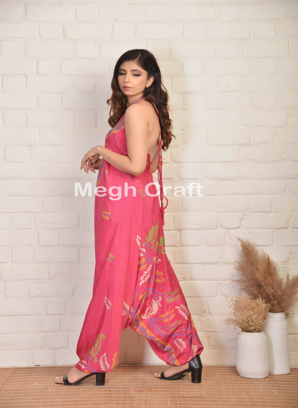 Designer Summer Fashion Recycled Silk overall Jumpsuit / romper. Best suitable for Casual Wear, Boho fashion , Bohemian , Summer Wear ,Fashion wear ,Lounge - Resort wear , Beach wear , Vacation Travel Wear, Street Fashion Wear , Everyday wear and urban fashion wear .