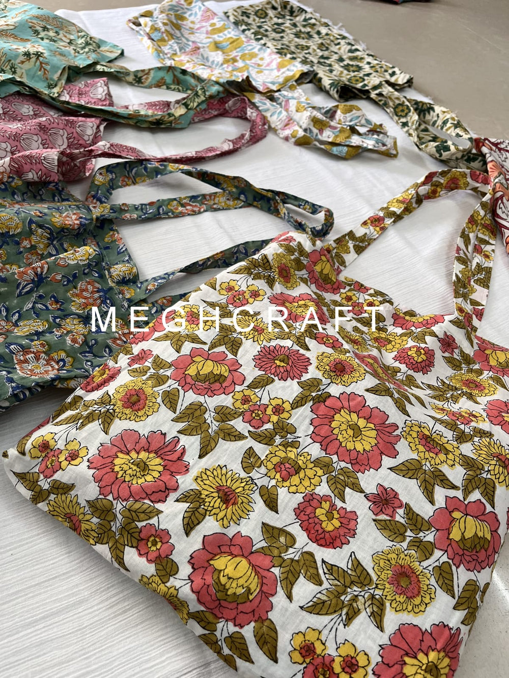 It will be comes in a mix lot of assorted block printed cotton fabric, colors and sizes. It is made from recycled cut pieces of block printed fabric.