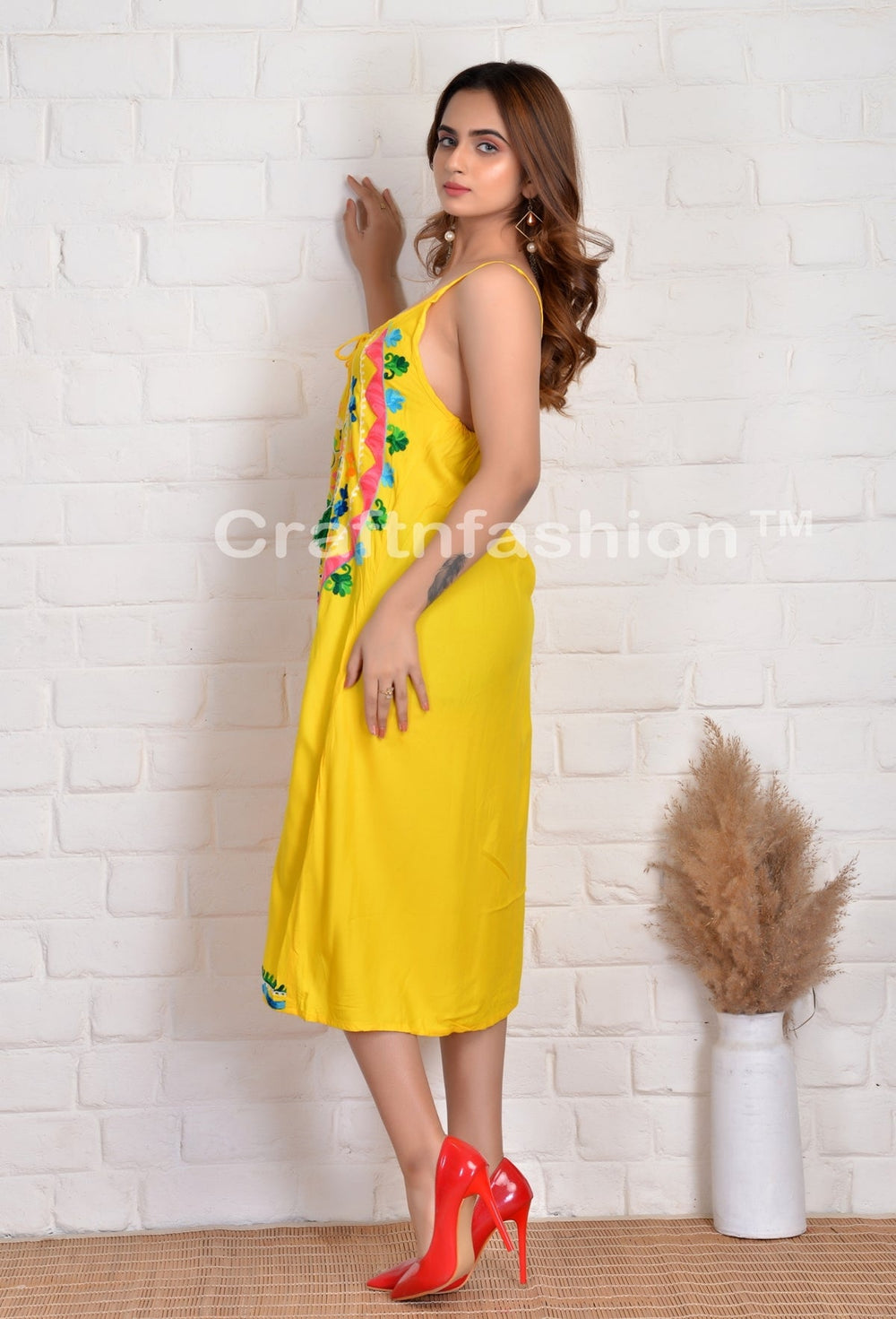 Beach Wear Embroidered Midi Dress, Designer Mandala Embroidery Work Spaghetti style Midi Dress.