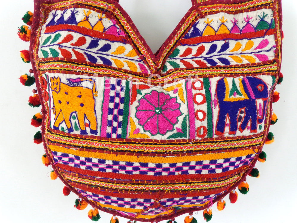 This is an embroidered colorful banjara Kutch bag .This beautiful bag is Handcrafted with patchwork Of Elephant Design. Embroidery is done with different colored threads in a very exclusive patch work style.