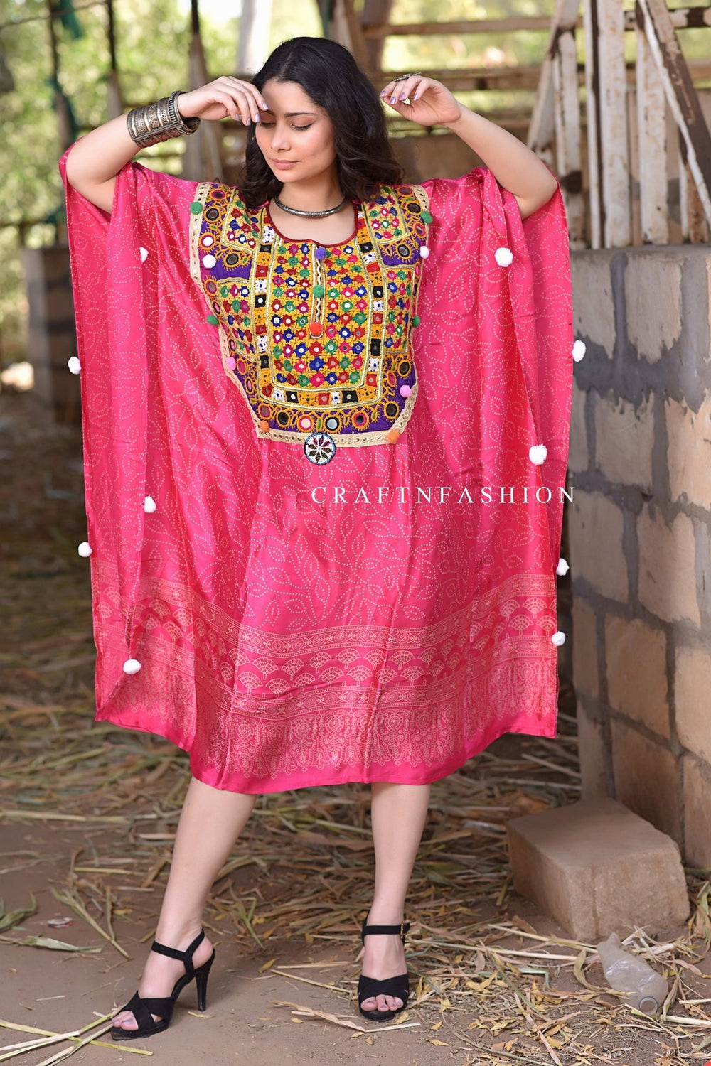 Designer Exclusive Indian Traditional wear Bohemian Banjara Style Kaftan kurta / kurti / Tunic with side cut. Best suitable for Boho Gypsy style , Bohemian Fashion wear , Festival wear , Navratri wear & Fashion wear.