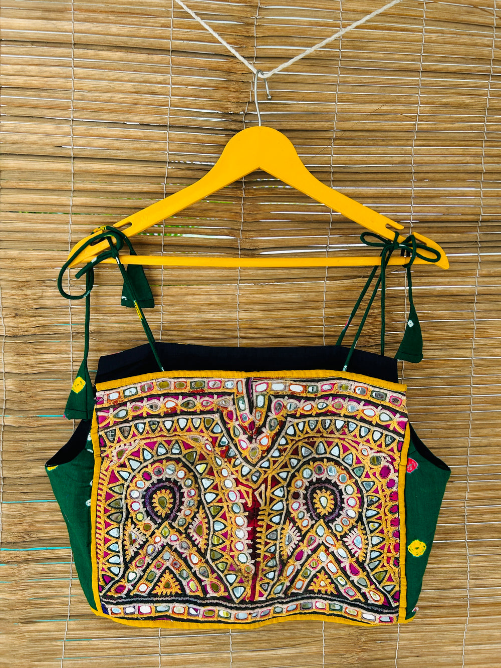 Elevate your festive look with this Indian fusion tube blouse top featuring exquisite Kutch embroidery and mirror work. A perfect blend of tradition and style, it’s ideal for Garba nights, Navratri celebrations, Sangeet functions, and parties.