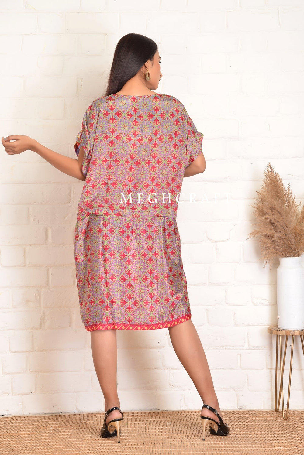 Designer Indian Vintage recycled Silk Bohemian Fashion Summer Wear Beach Wear Short Dress / Top