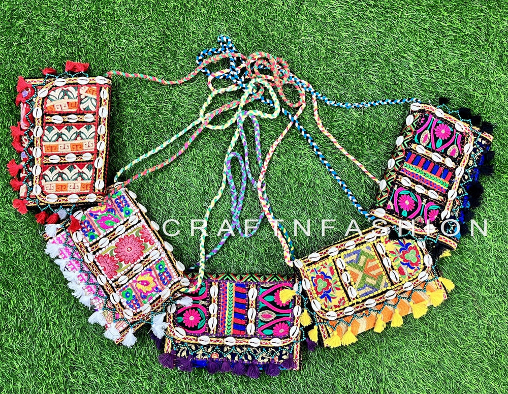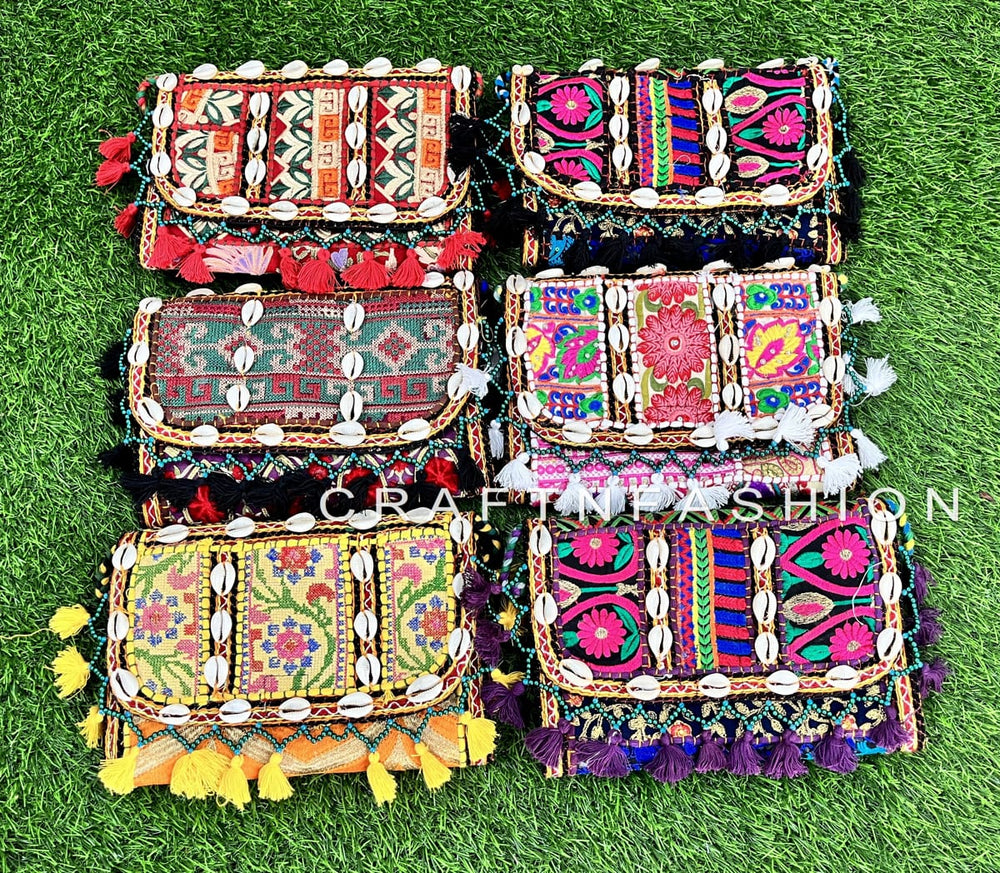 Exclusive Bohemian Fashion Banjara Patchwork Sling Bag Embellished with Shells and Fringe. It will come in Assorted Colors, Designs & Patterns.